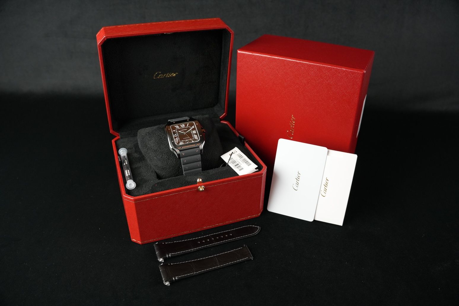 With additional Cartier leather strap.