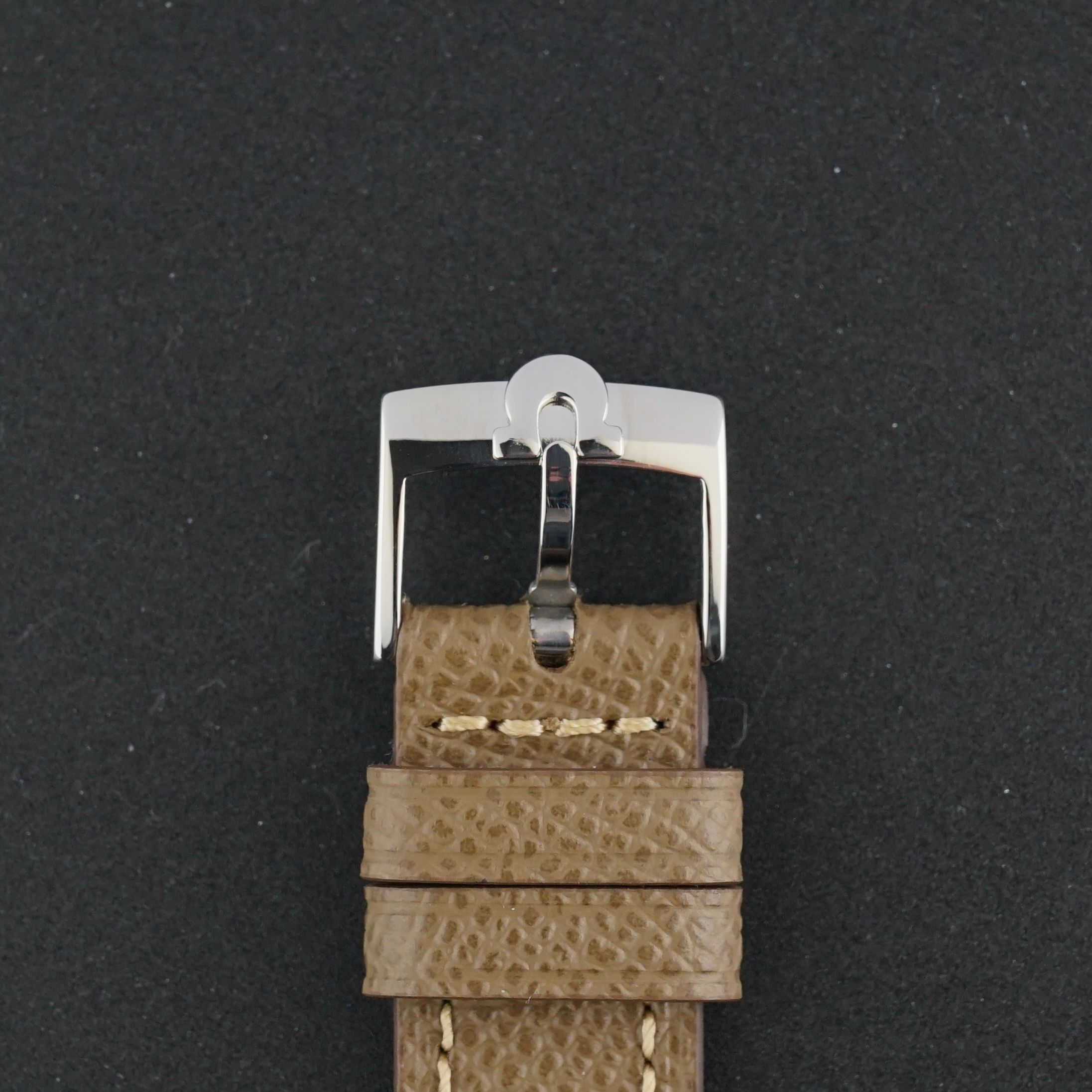This Vintage Omega Seamaster De Ville from 1964 features a beautiful white dial with light patina. The dial is fitted with a crosshair motif and a date window at the 3 o’clock position. Inside is the caliber 611 manual wind movement, which was serviced in February 2026 and currently runs and functions excellently. The watch has a slim profile at 9,4 millimeters thick, thanks to the slim caliber 611 movement. It is paired with a brown leather strap with off-white stitching, which suits the watch very well. The watch is entirely original, with the exception of the freshly replaced leather strap.Year of production: 1964