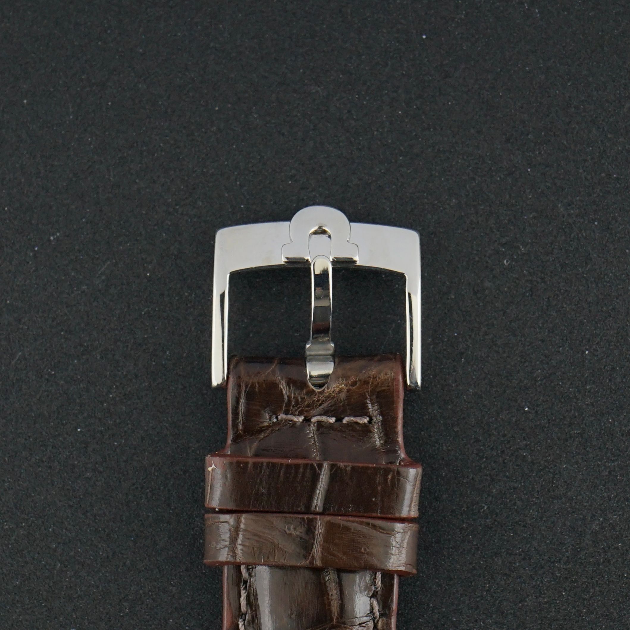 Strap: A brown top-grain leather strap with a crocodile motif. (Fits a 12 to 20cm wrist)