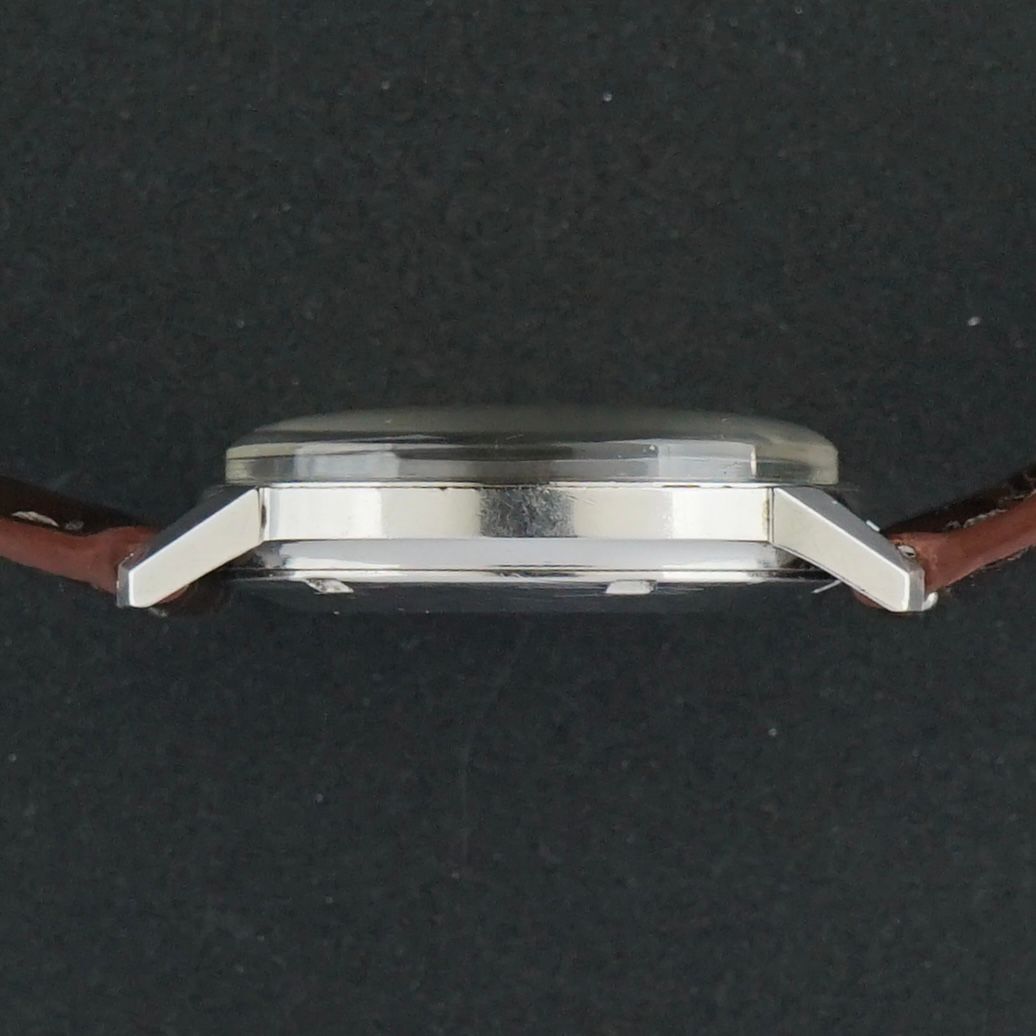 Cette Omega Seamaster vintage a été produite en 1968. Elle présente un magnifique cadran blanc avec un effet soleil en presque parfait état, cependant, il y a une très petite tache entre les positions 7 et 8 heures. À l'intérieur se trouve un mouvement automatique calibre 565, qui a été révisé en février 2026 et fonctionne actuellement très bien. Le boîtier en acier inoxydable mesure 34,5 millimètres de large. La montre est accompagnée d'un bracelet en cuir de vachette marron avec un motif crocodile. Cette montre reste entièrement originale, à l'exception du bracelet en cuir fraîchement remplacé.