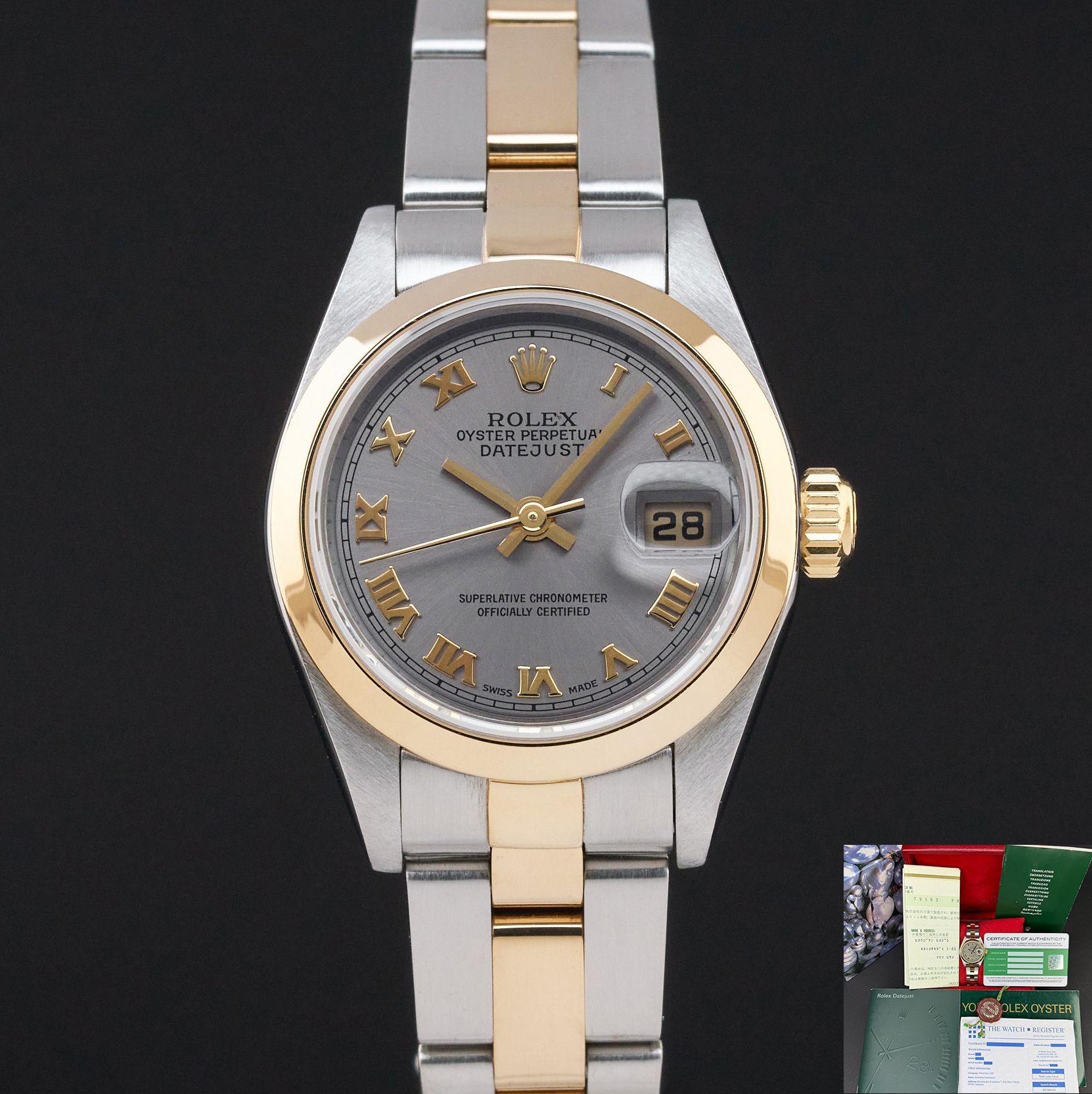 Rolex Lady Datejust, 79163, 26mm, 2000, Two-Tone, Grey Roman dial, Fullset, 1y warranty