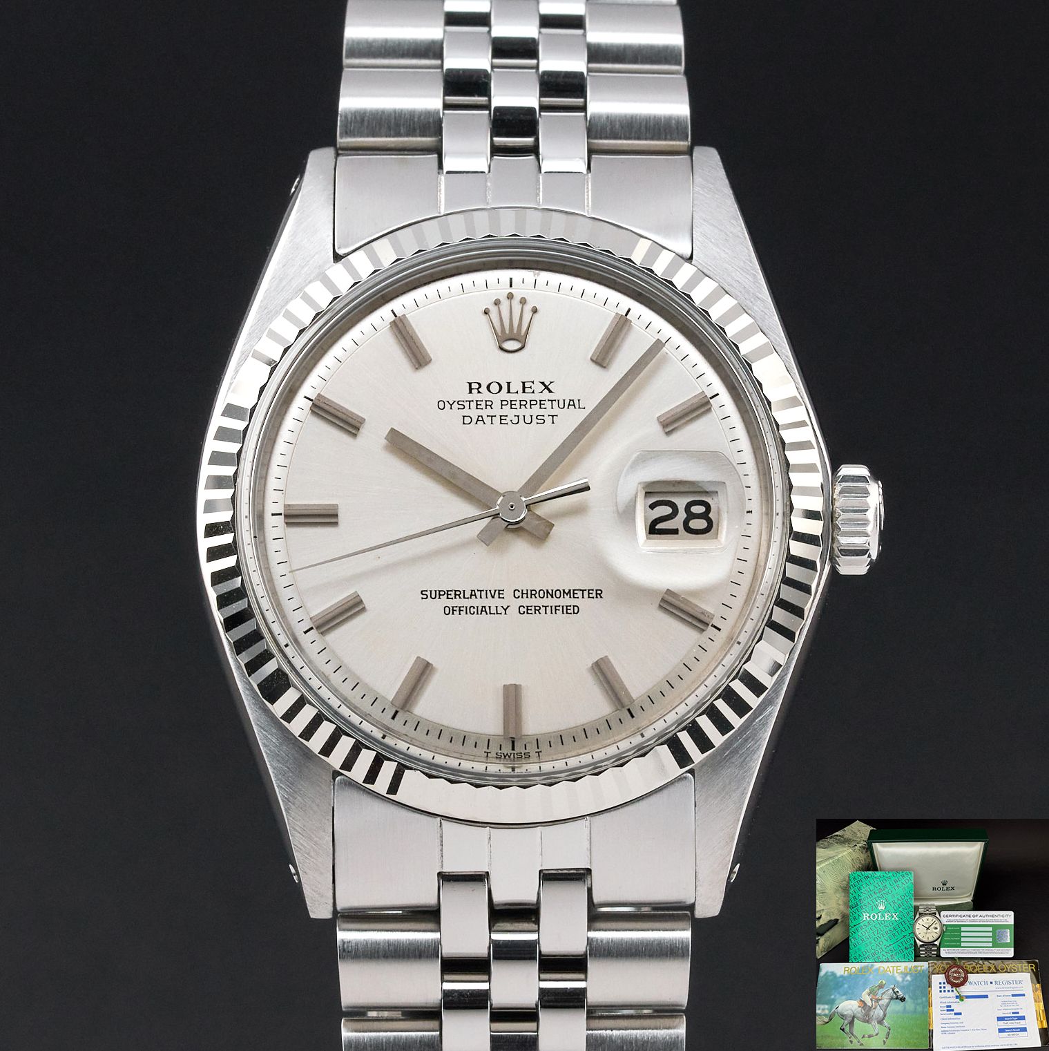 This Rolex Datejust 1601 features a Silver dial and is crafted from stainless steel, with a production year of 1973.Case No: 328XXXX