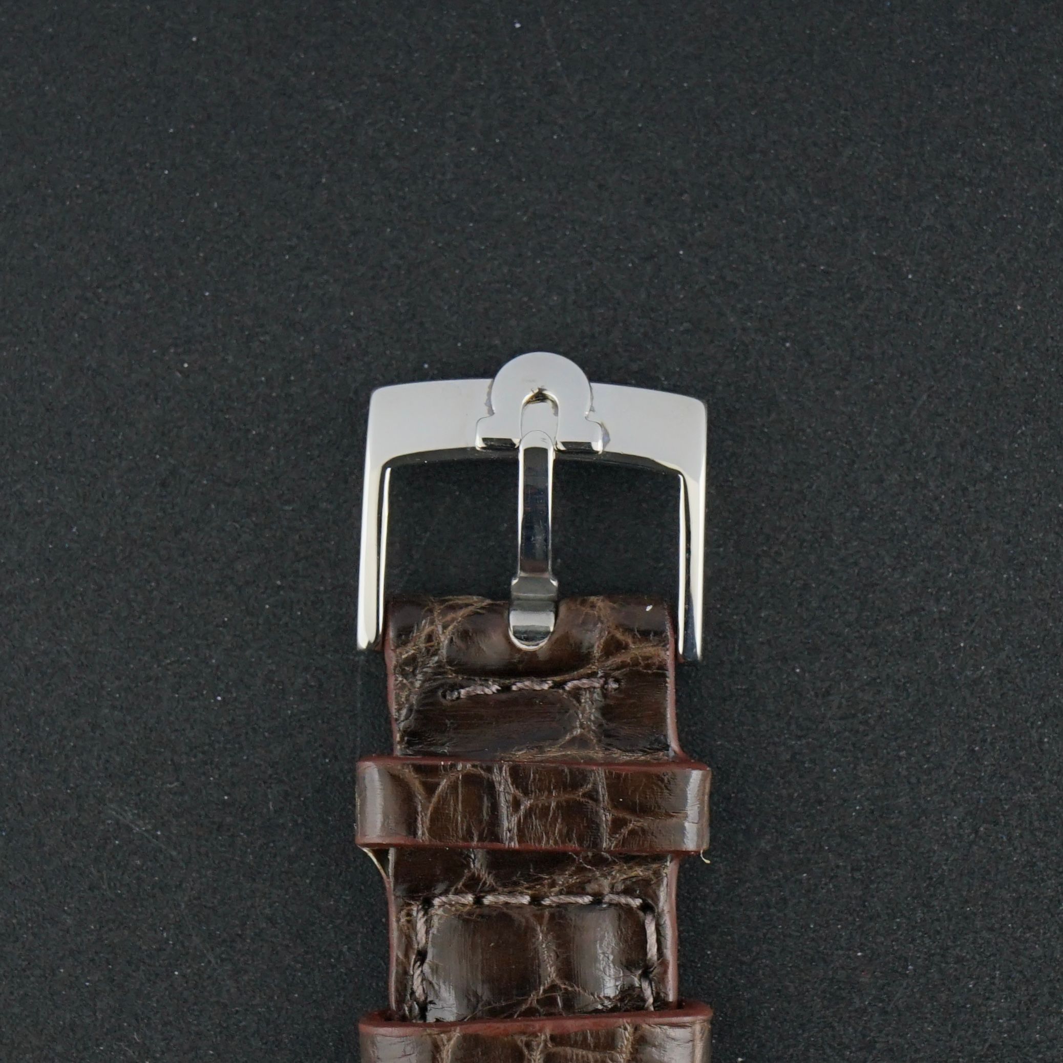 Strap: A top-grain brown leather strap with crocodile motif. (Fits a 12 to 20cm wrist)