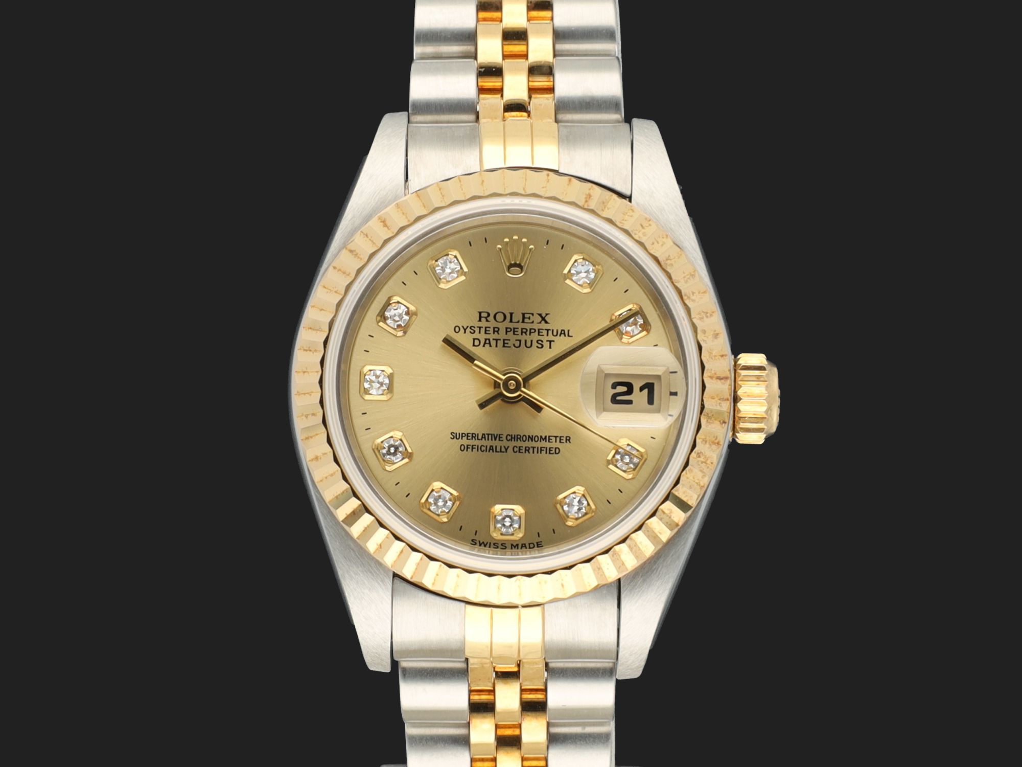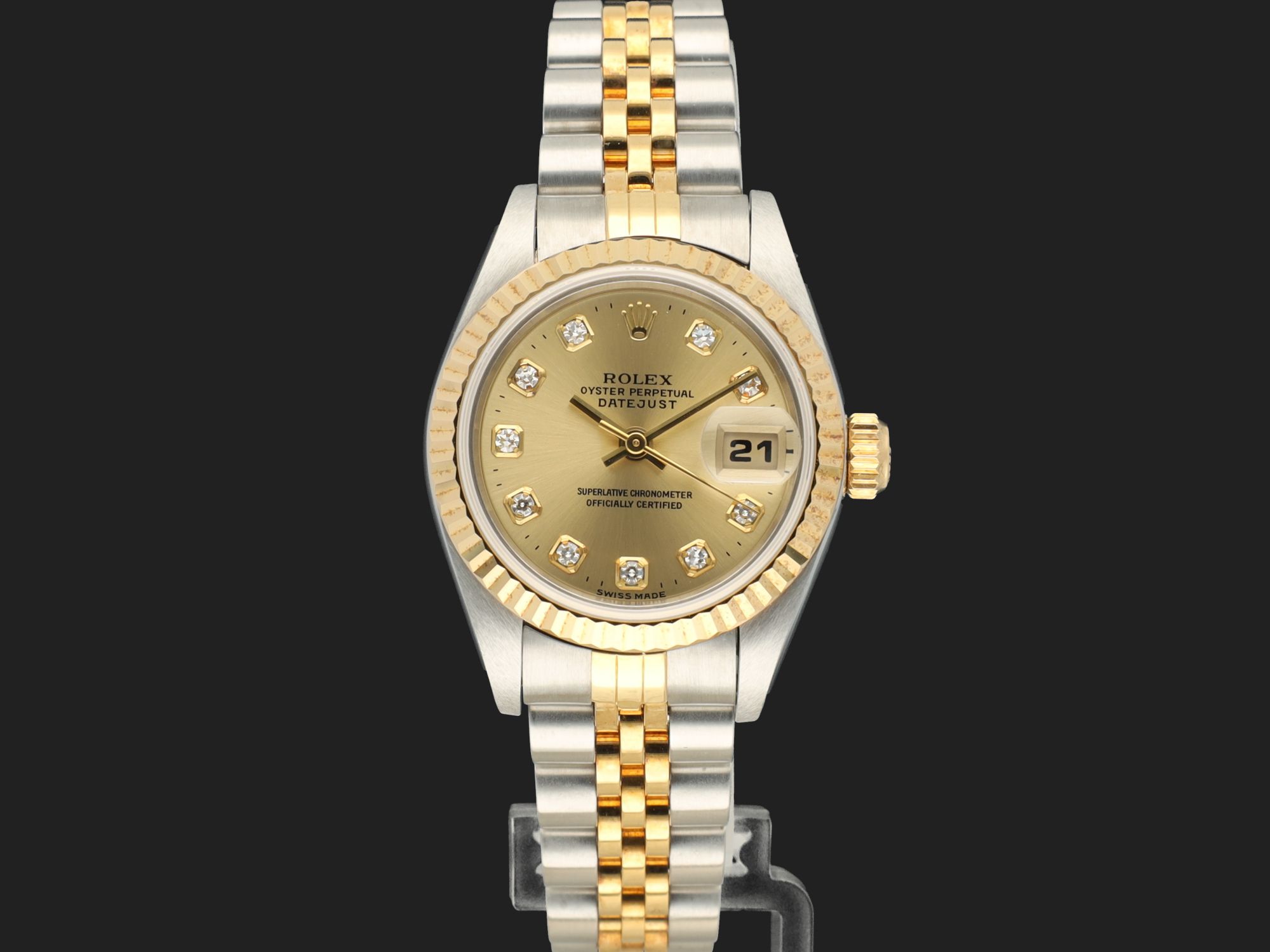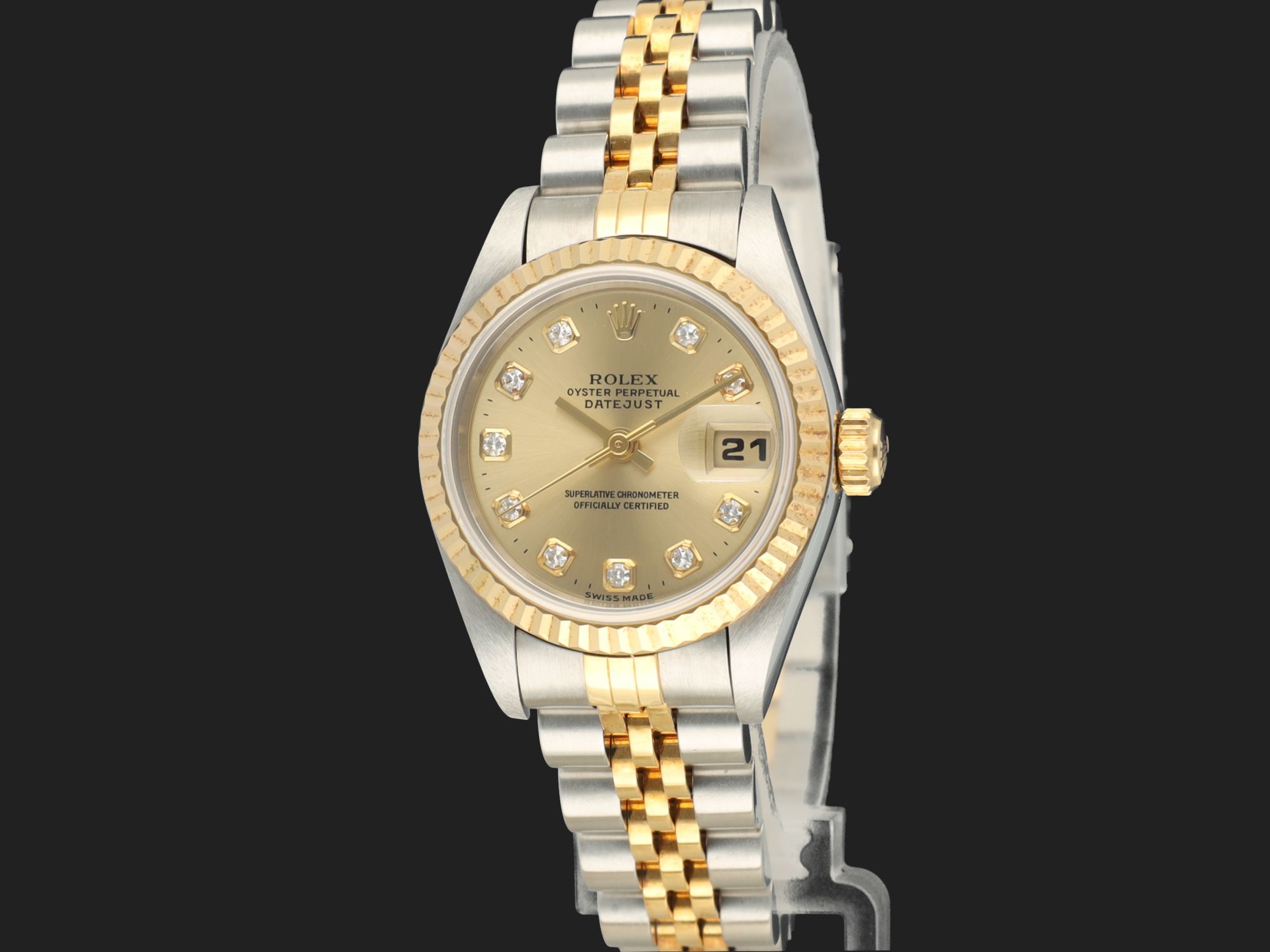 Dial colour is champagne with diamond index.Originally sold by Rolex in 03/1997, LC400 (Hong Kong).