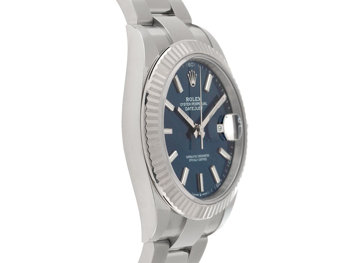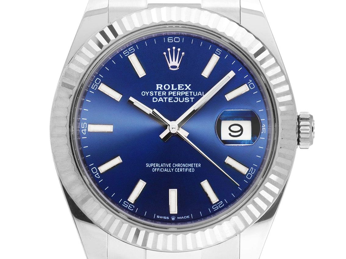 Rolex Datejust Stahl 18kt Weißgold Automatik Armband OysterGehäuse Edelstahl poliert und satiniert, Gehäusedurchmesser ohne Krone 41mm, Gehäusehöhe 11,6mm. Lünette 18kt Weißgold geriffelt und poliert. Armband Oyster Edelstahl poliert und satiniert, Rolex Faltschließe Edelstahl mit Hersteller-Logo. Zifferblatt blau mit aufgesetzten weißgoldenen Leuchtindexen und weißgoldenen Leuchtzeigern. Uhrwerk Automatik, Chronometer mit Zeugnis, Rolex Manufakturkaliber 3235 mit 31 Edelsteinen, Gangreserve ca. 70 Stunden. Anzeige von Stunde, Minute und Sekunde über Zeiger aus der Mitte mit Sekundenstopp zur sekundengenauen Einstellung der Uhrzeit, Datumsanzeige mit Schnellverstellung unter Glaslupe bei 3 Uhr. Saphirglas kratzfest. Krone verschraubbar mit Hersteller-Logo. Boden Edelstahl verschraubt. Gewicht der Uhr inklusive Armband 138g, Länge des Armbandes inklusive Gehäuse 170mm. Wasserdicht bis 10 ATM. Referenznummer: 126334, ID: P2467240000226H-15900/11450, Artikelnummer: 10000084705. Original Rolex Box mit Umkarton und Garantie Papiere von November 2025, neue Rolex Garantie Karte ohne Ländercode sowie Beschreibung, Ledermäppchen, Rolex Chronometer-Siegel und Watchregister Auszug von Februar 2026, The Watch Register Zertifikat / ohne Eintrag (Internationale Datenbank für verlorene oder gestohlene Uhren), Full Set. Kapitalanlage mit Wertsteigerungspotential. Ungetragen. Lieferzeit sofort.