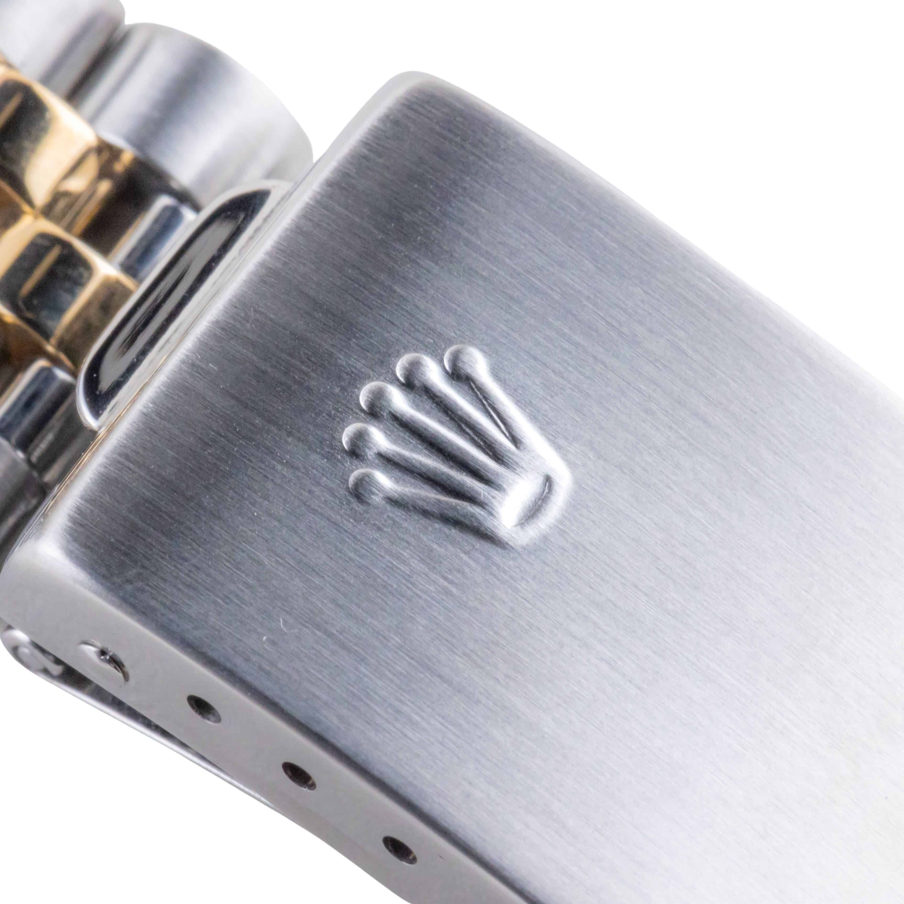 Rolex Oyster Perpetual Datejust référence 16233 de 2000, comprenant l'ensemble complet. La Datejust 16233 mesure un boîtier en or et acier inoxydable de 36 mm, un bracelet Jubilee bicolore et une lunette cannelée en or 18 carats. Cette Datejust 16233 est équipée d'un mouvement automatique calibre 3135 avec fonction date rapide, d'un verre saphir résistant aux rayures et d'un cadran noir avec des aiguilles en tritium.