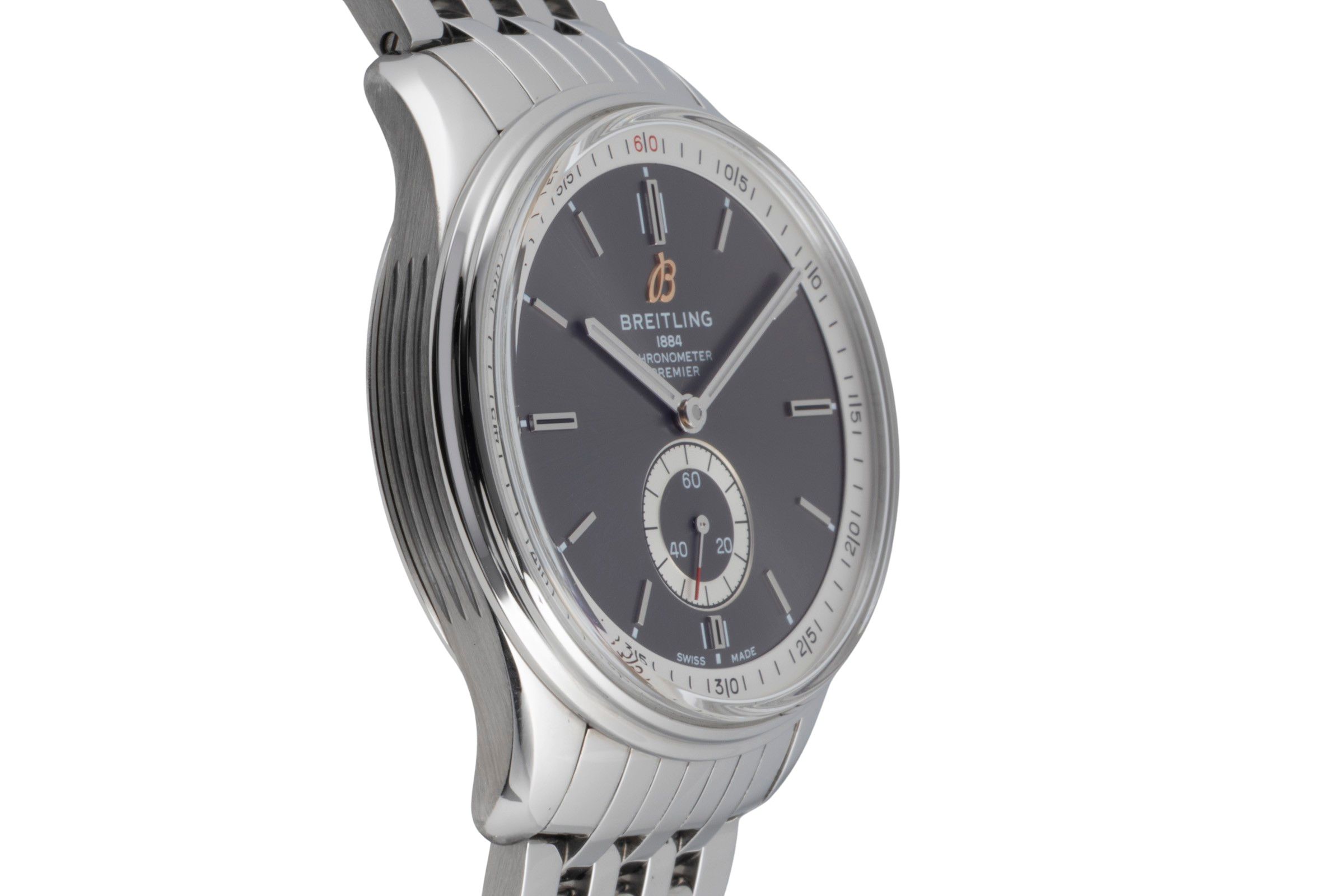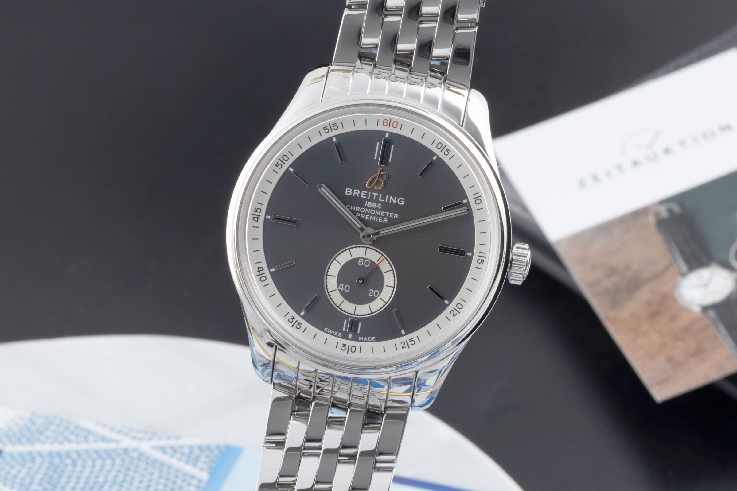 Alternative title: Breitling A37340351B1A1 Premier Automatic 40 Stainless Steel / Anthracite / Bracelet; Breitling Premier Automatik 40 Stahl Herrenuhr Ref. A37340351B1A1 B&P [2600130]