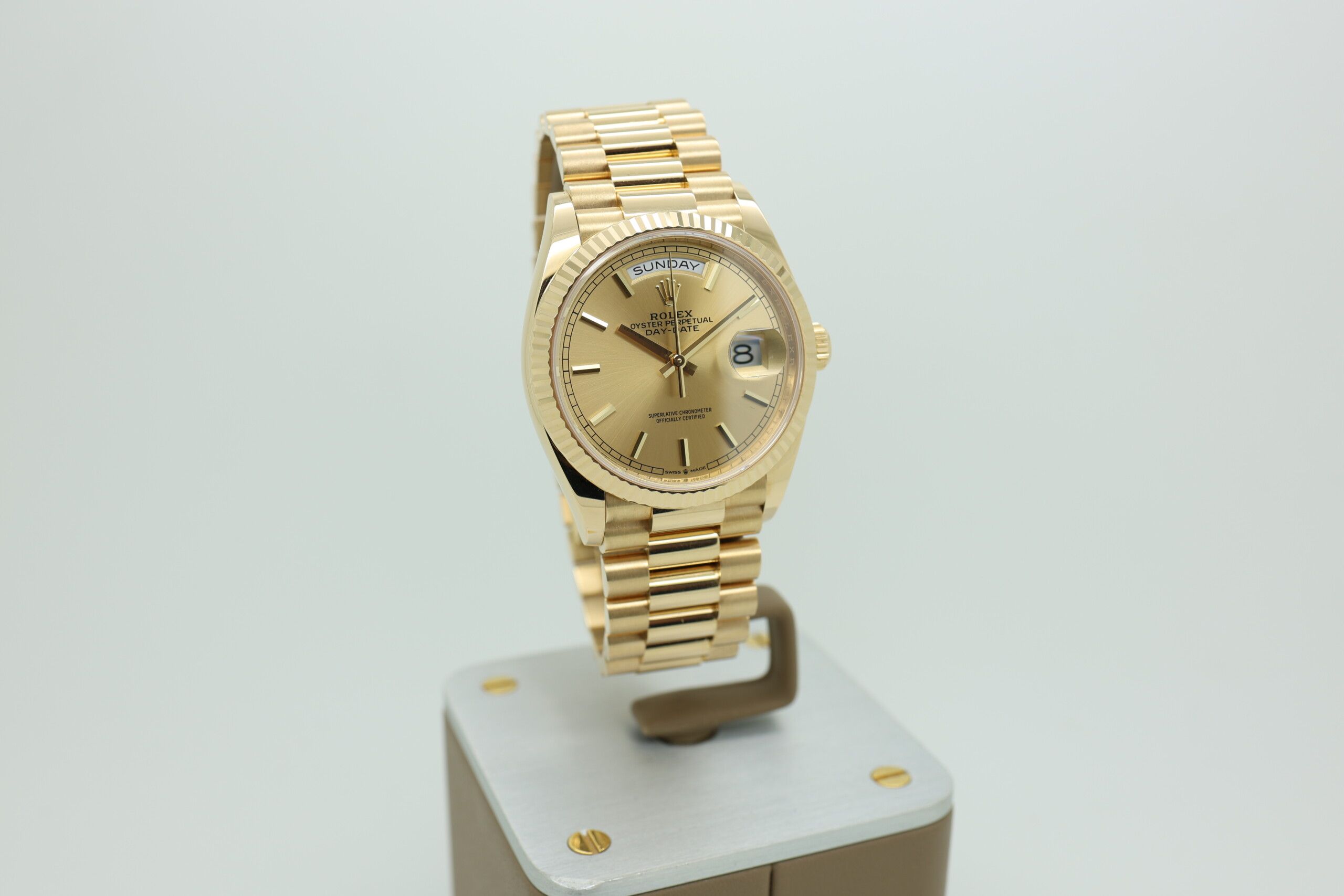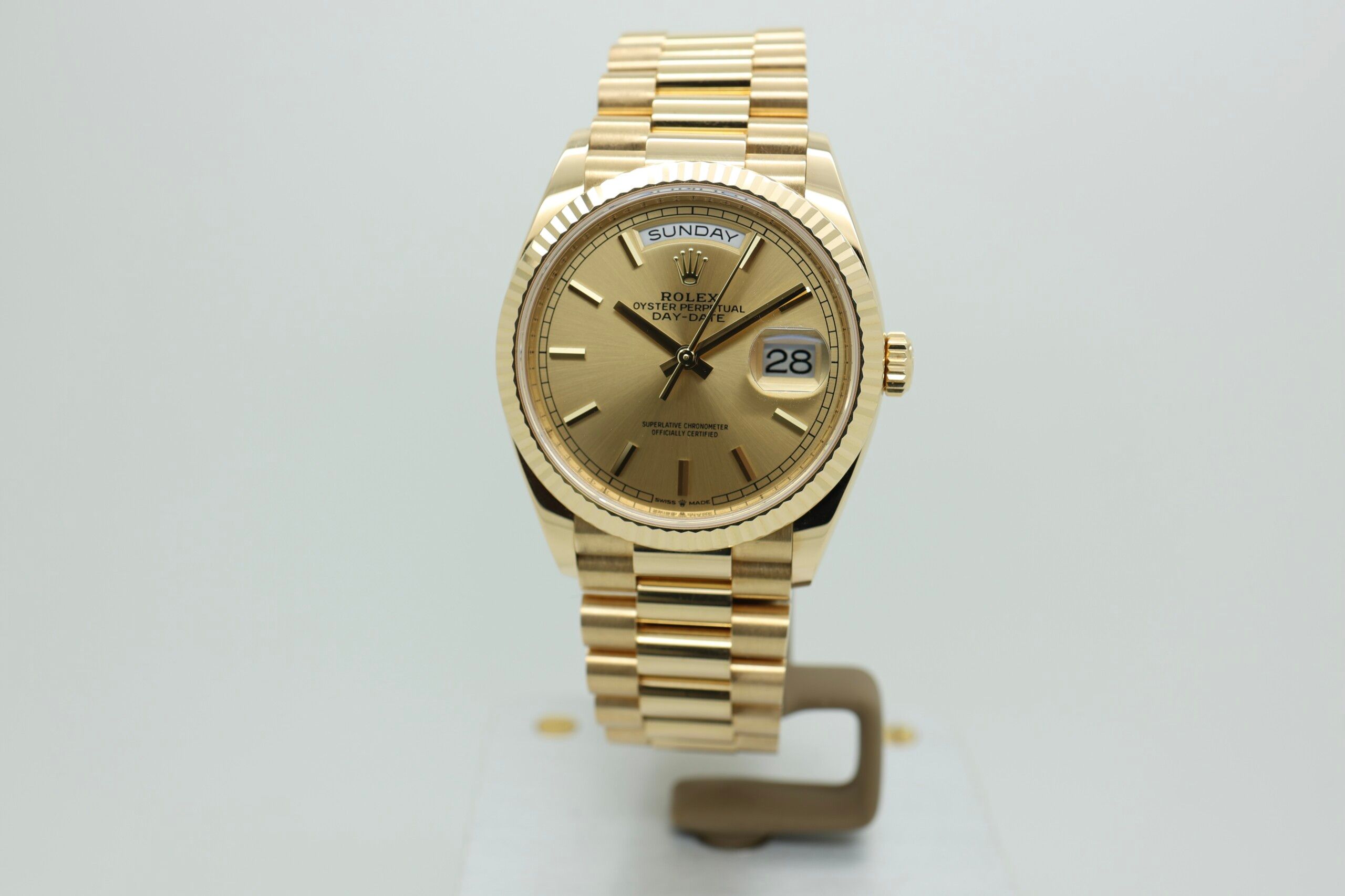 💡 Fun fact: The Day-Date was the first wristwatch ever to spell out the day of the week in full — a feature introduced by Rolex in 1956 that remains exclusive to the model today.