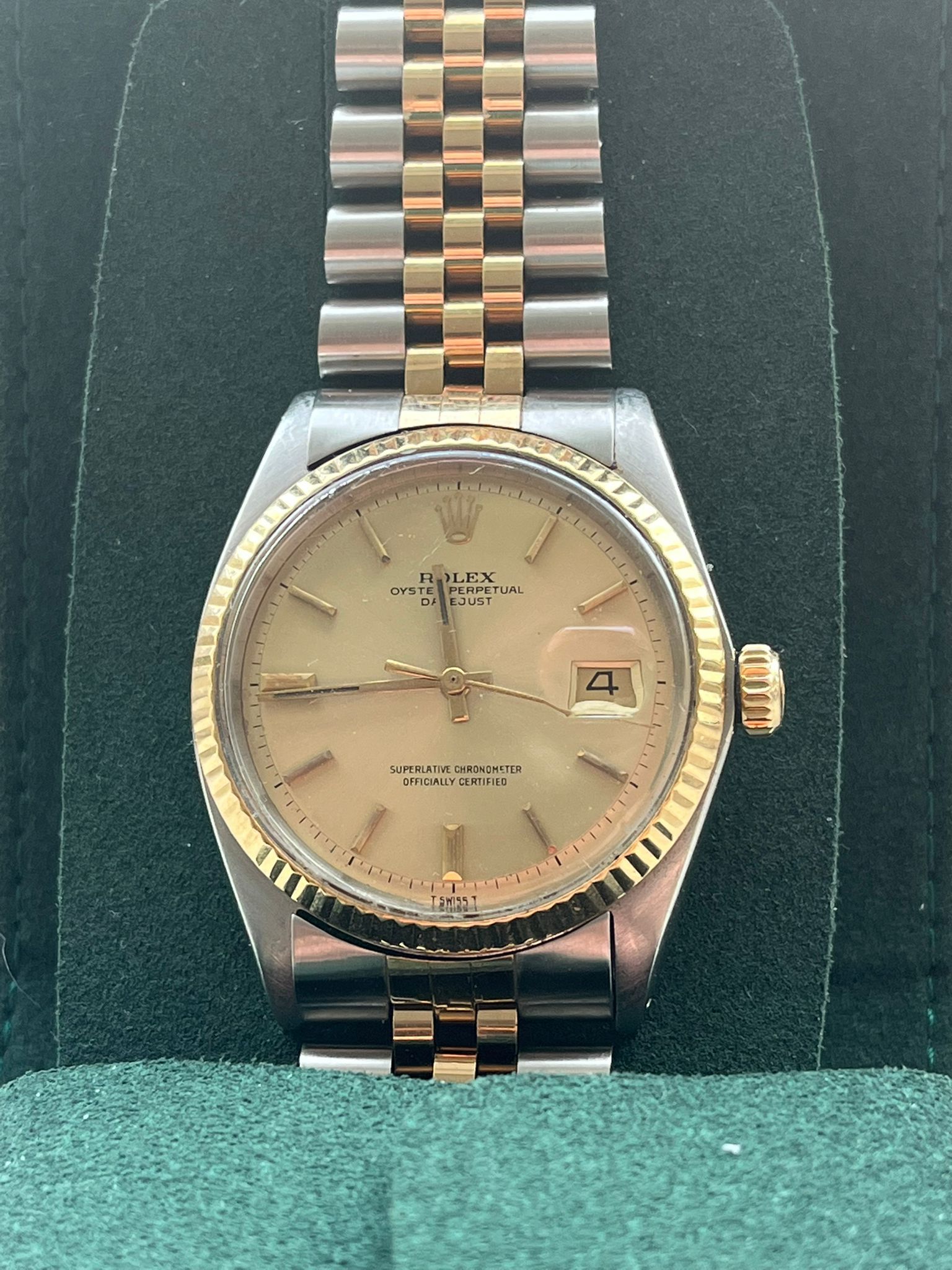 This stunning Rolex Datejust ref. 1601 is presented in its classic two-tone configuration, featuring a timeless vintage dial and the iconic Jubilee bracelet—one of the most elegant and recognizable designs within the Datejust collection. The combination of the 36 mm Oyster case in stainless steel, the 18k yellow gold fluted bezel, and the refined pie-pan dial results in a perfectly balanced timepiece that embodies Rolex’s timeless elegance and enduring vintage charm.This example dates back to 1967 and remains a beautiful and well-preserved vintage piece. The watch is powered by the renowned Rolex in-house caliber 1575, celebrated for its durability, precision, and robust construction. As expected from this generation, the movement operates without quickset date and represents one of Rolex’s most respected vintage calibers.
