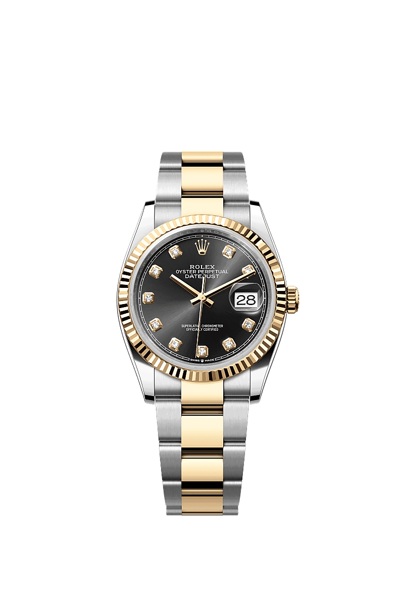 Rolex 126233-0022 Datejust 36 Acier inoxydable / Or jaune / Canellé / Diamant noir / Oyster