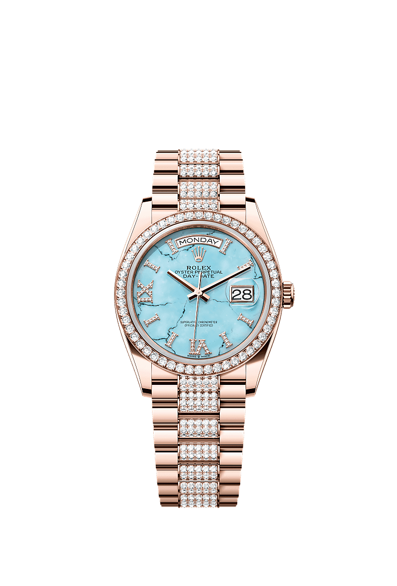 Rolex Day-Date 36 Rolex 128345RBR-0065 Day-Date 36 Everose Gold - Diamond / Turquoise / President - Diamond