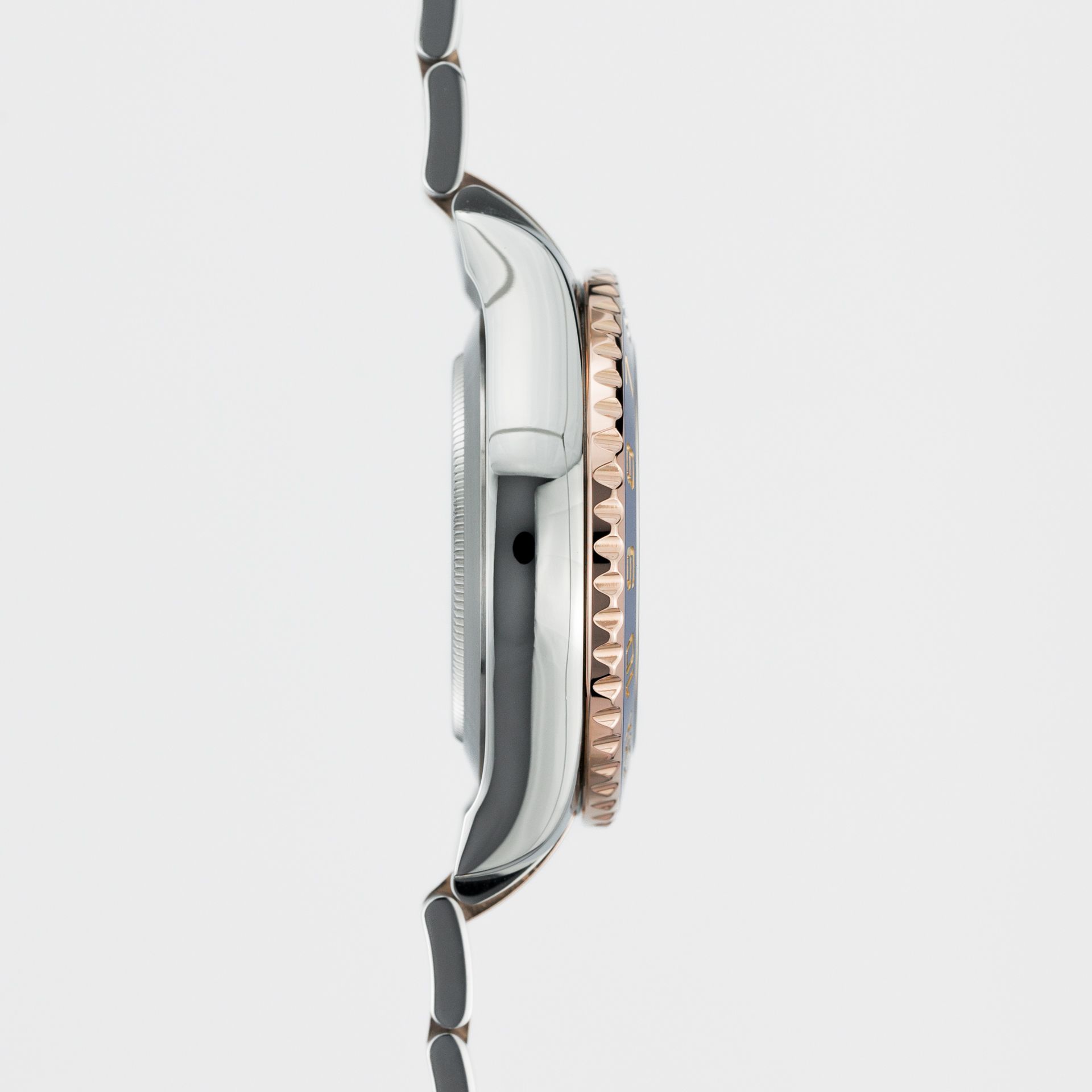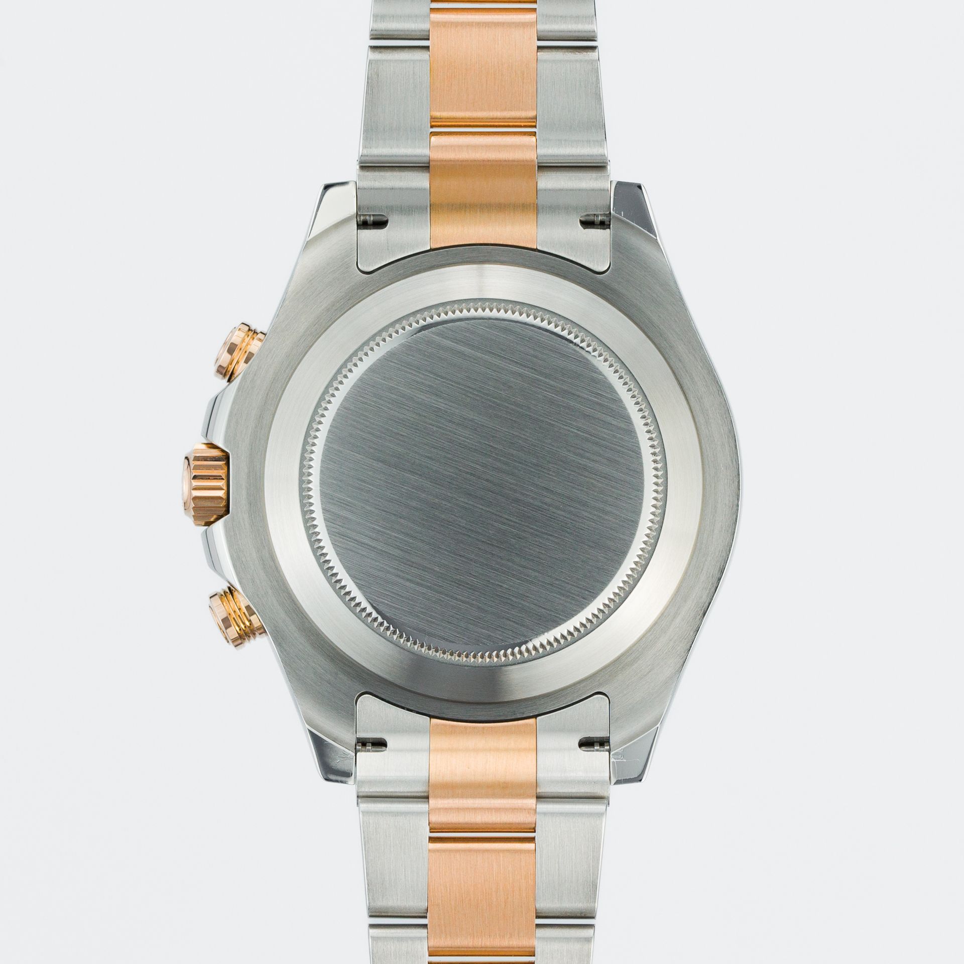 For the case back of the watch, Rolex uses a simple solid back (as, by the way, in all its models) – in this case, it is devoid of any markings, inscriptions, or other "decorations". As we all know, for its watches Rolex uses noble 904L steel; recently Rolex has been calling this alloy Oyster Steel, and in the case of this model, it is combined with Everose gold – the bezel, crown, pushers, center bracelet links, and dial elements are made of 18-carat rose gold. It is a widely known fact that Rolex can be called fanatics when it comes to the alloys they use – a large part of the metallurgical processes are done in-house to guarantee consistent quality of the raw material – many watches have passed through my hands, but I can say with absolute certainty that no other brand devotes so much attention and effort to the quality of the final product in terms of case finishing – and as a result, a unique quality and presence cannot fail to be achieved.