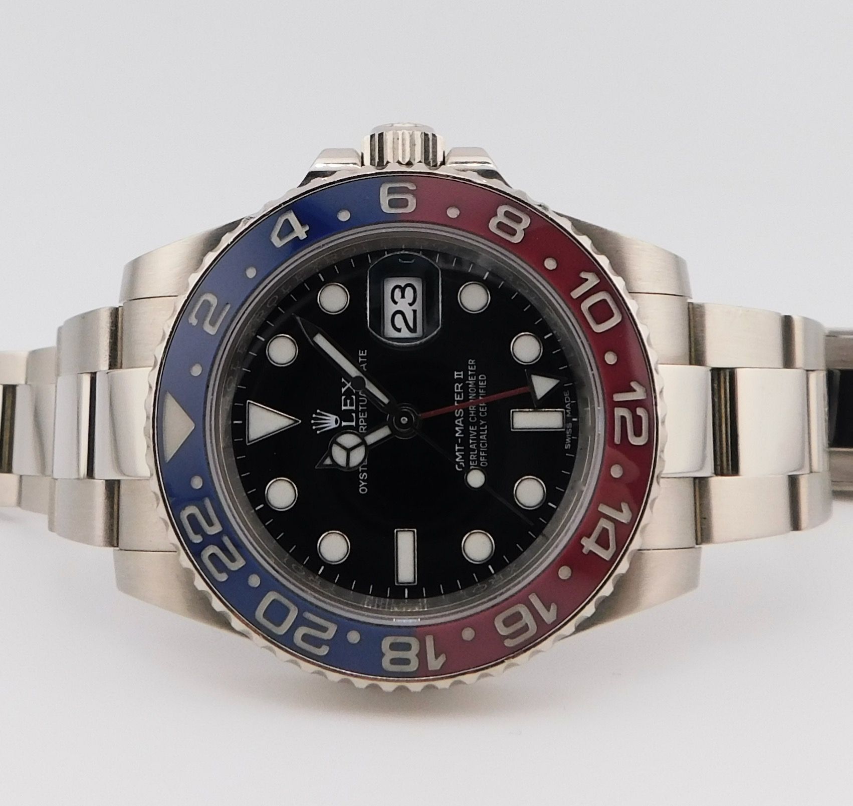 Rolex GMT-Master II 116719BLRO, Or blanc, Boîte/Papier