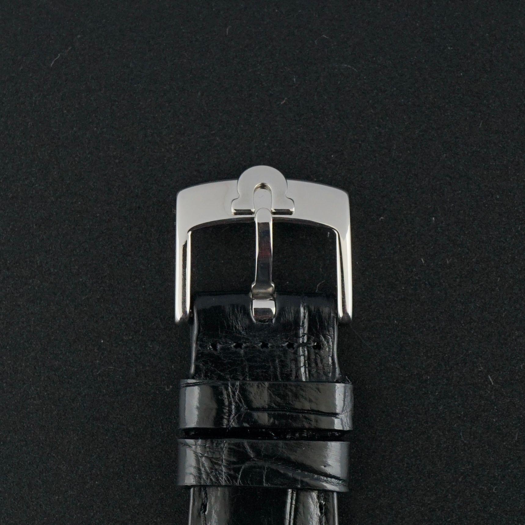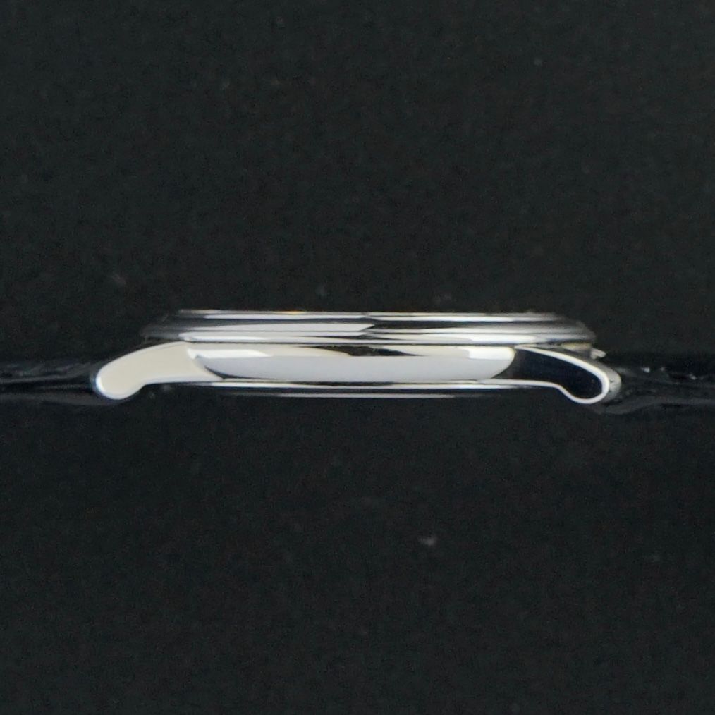Le calibre 651 a été révisé en février 2026 et fonctionne actuellement de manière excellente. Nous avons associé la montre à un tout nouveau bracelet en cuir pleine fleur noir avec un motif crocodile et une finition légèrement brillante, complétant parfaitement son caractère.