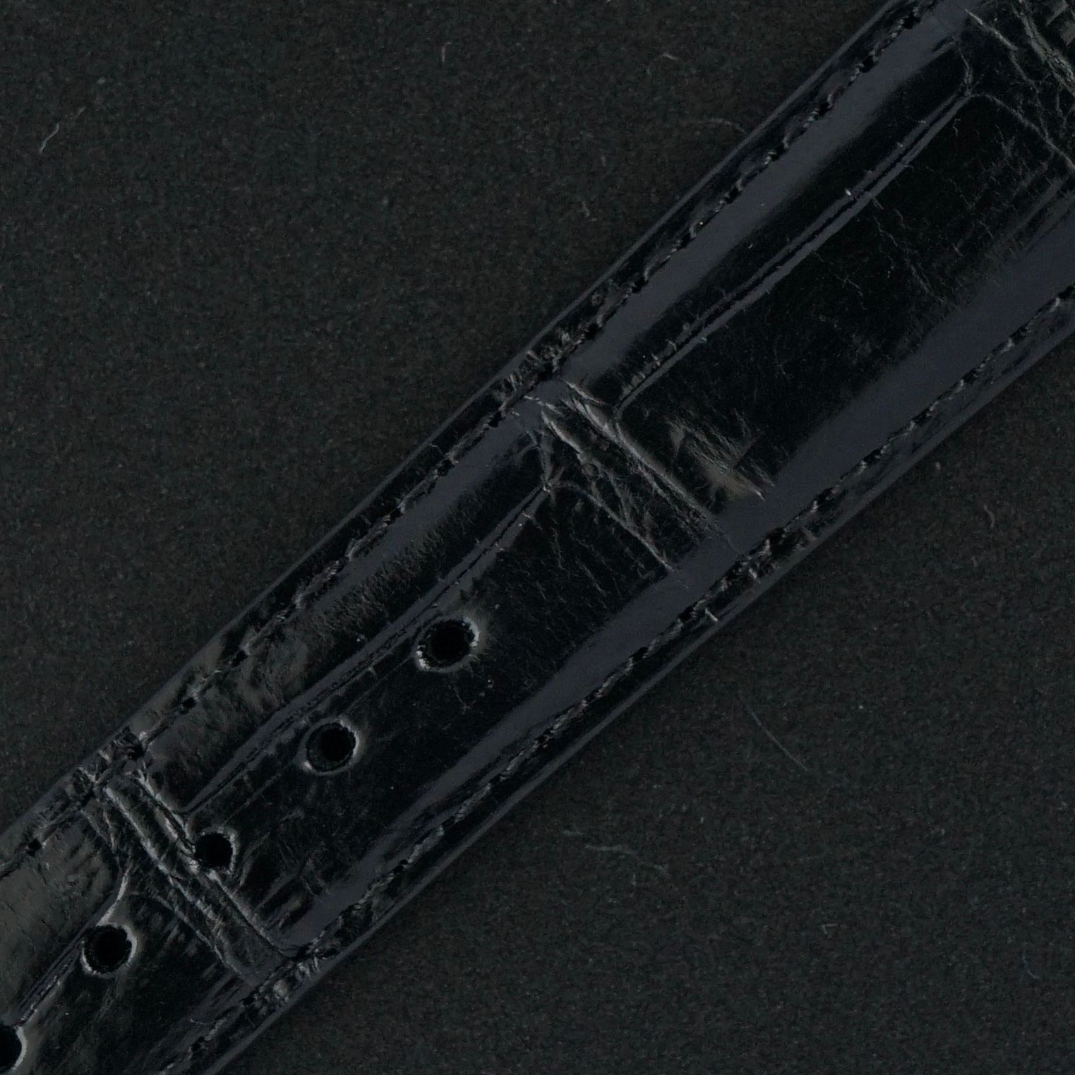 Strap: A black top-grain leather strap with a crocodile motif. (Fits a 13 to 20cm wrist)