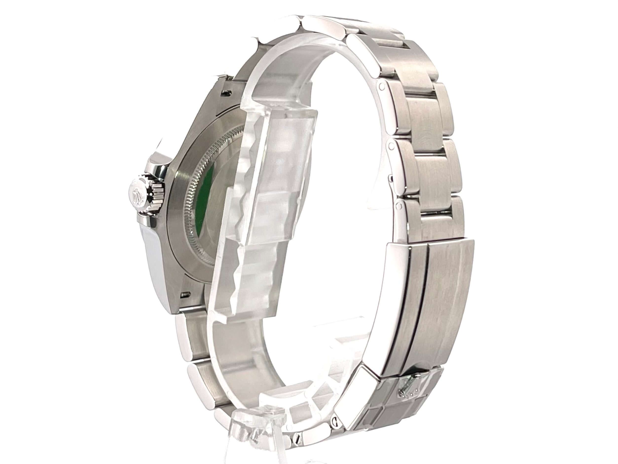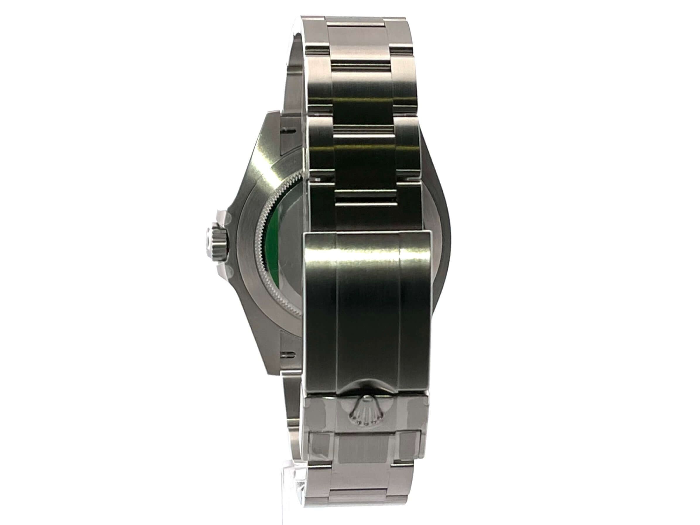 Boîtier en acier inoxydable poli et satinée, diamètre du boîtier 40 mm, lunette en acier inoxydable poli, bracelet Oyster en acier inoxydable poli et satinée avec fermoir déployant, cadran noir avec chiffres arabes appliqués lumineux et marqueurs lumineux, mouvement automatique, calibre Rolex 3230 fabriqué en interne avec 31 rubis, réserve de marche de 70 heures, fréquence de 28 800 vibrations par heure, verre saphir résistant aux rayures, couronne vissée, aiguille des secondes verte avec point lumineux, fond en acier inoxydable vissé, étanche jusqu'à 10 bars.