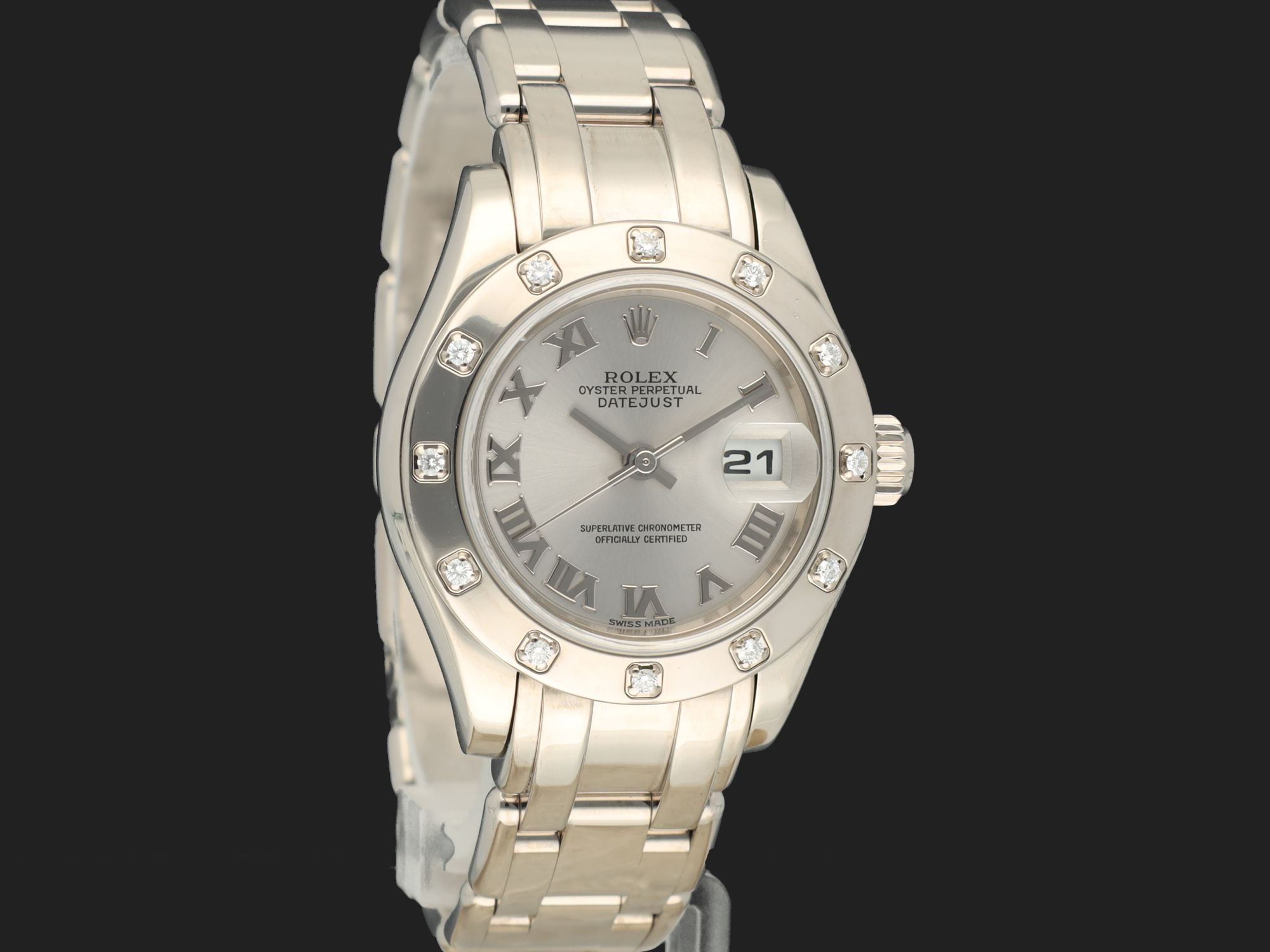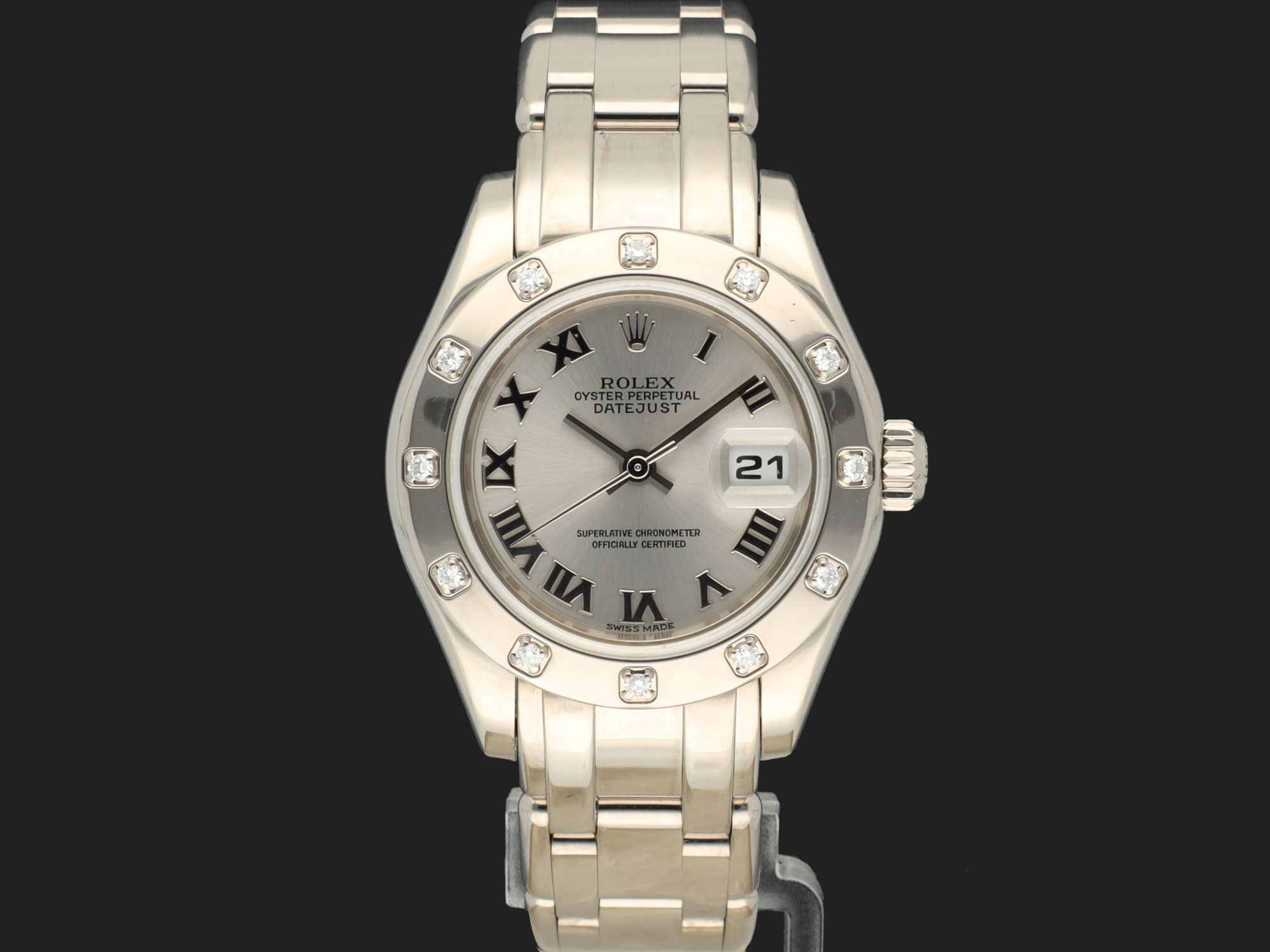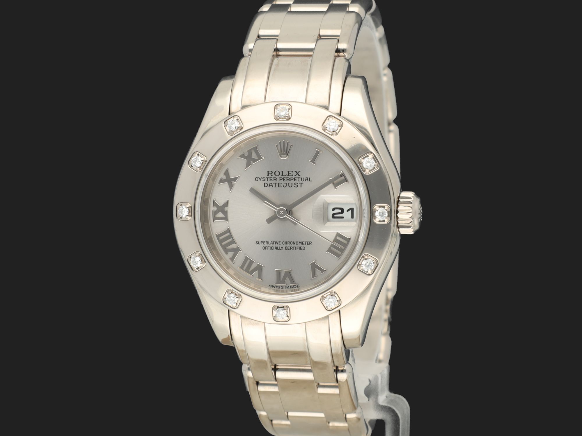 Lady-Datejust Pearlmaster White Gold Silver Roman Dial 80319