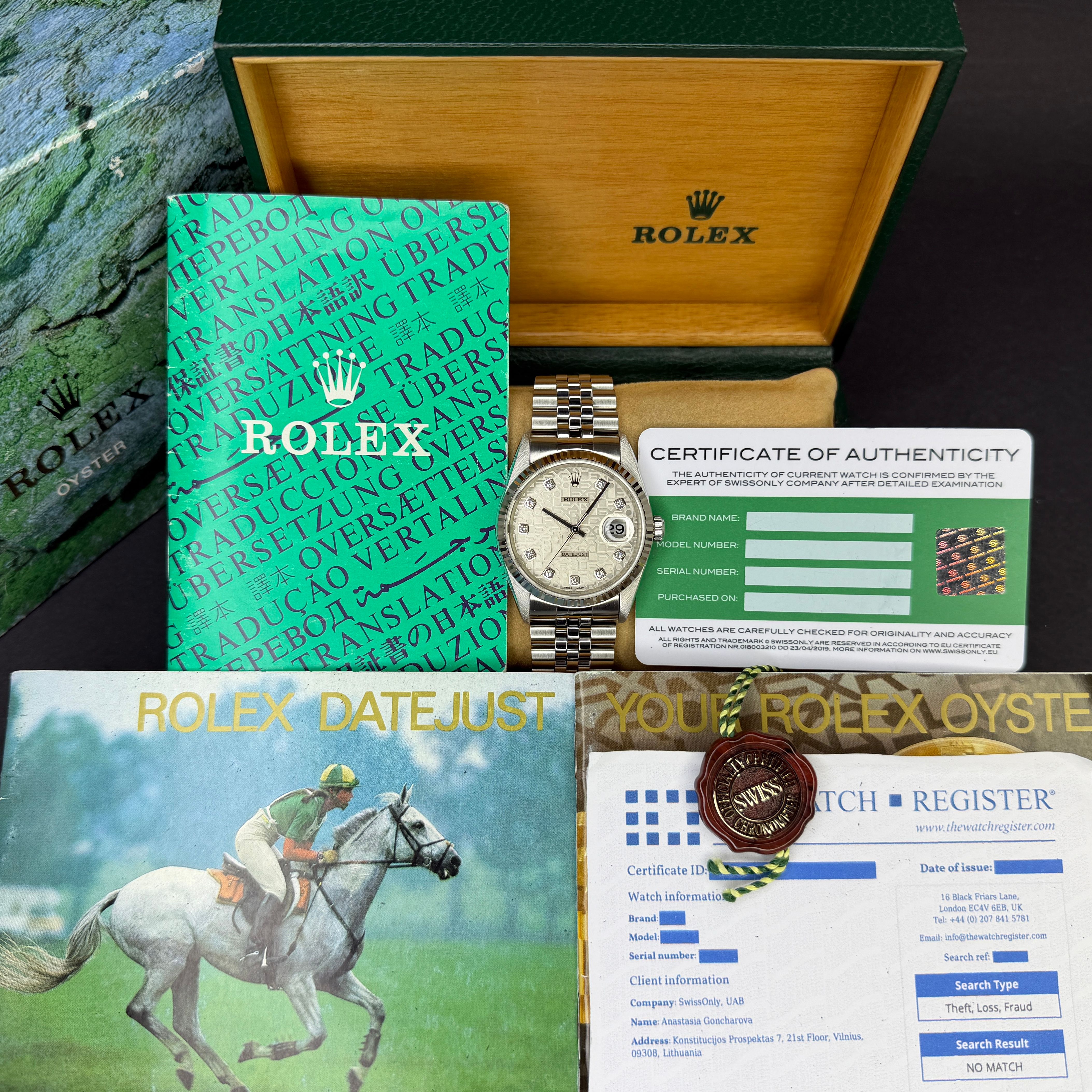 Rolex Datejust 36 Rolex Datejust, 16234, 36mm, 1997, Steel, Silver Jubilee Big Diamond dial, Box, 1y warranty