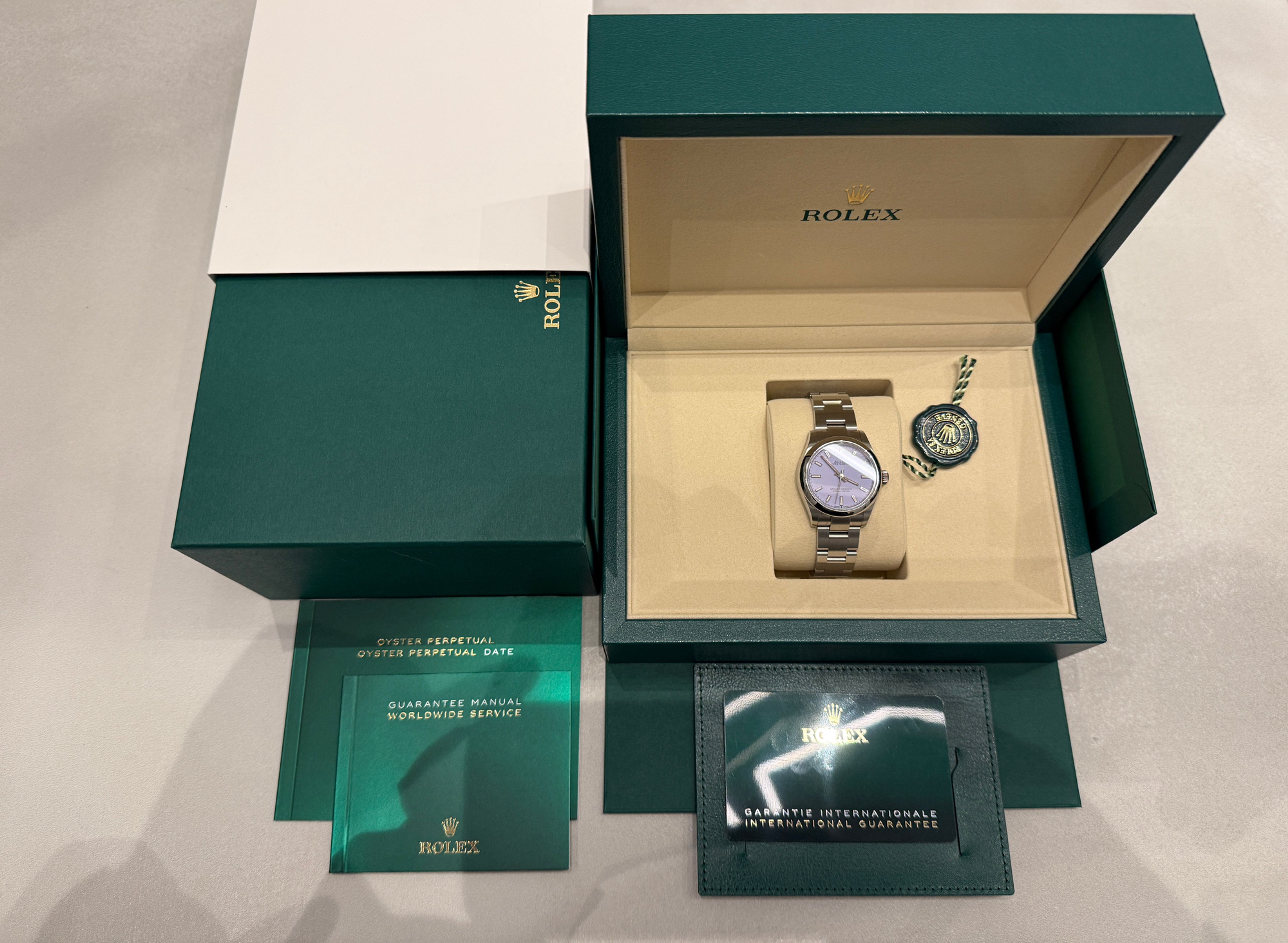 Rolex Oyster Perpetual 31 Ensemble Complet 12/2025 Jamais porté Lc AT Lavande