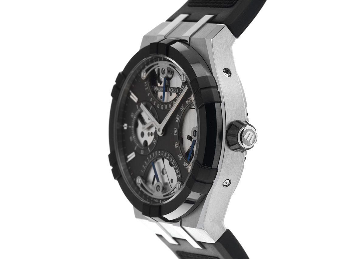 Maurice Lacroix Aikonic Master Triple Retrograde Acier Céramique Automatique Bracelet Caoutchouc