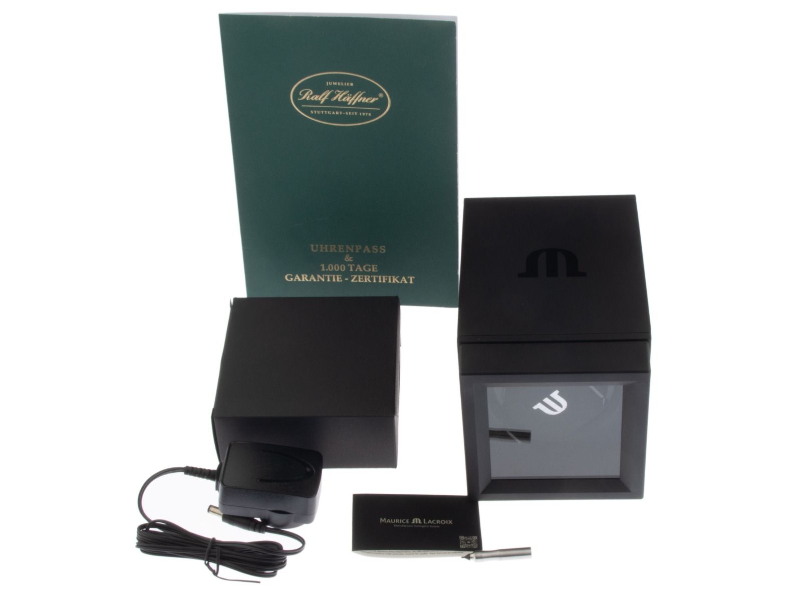 Inclus le sceau certified pre owned / passeport de montre avec une image couleur, la description précise ainsi que la valeur de remplacement de la montre supérieure à 7500,-€ et 1000 jours de garantie à partir de la date d'achat.