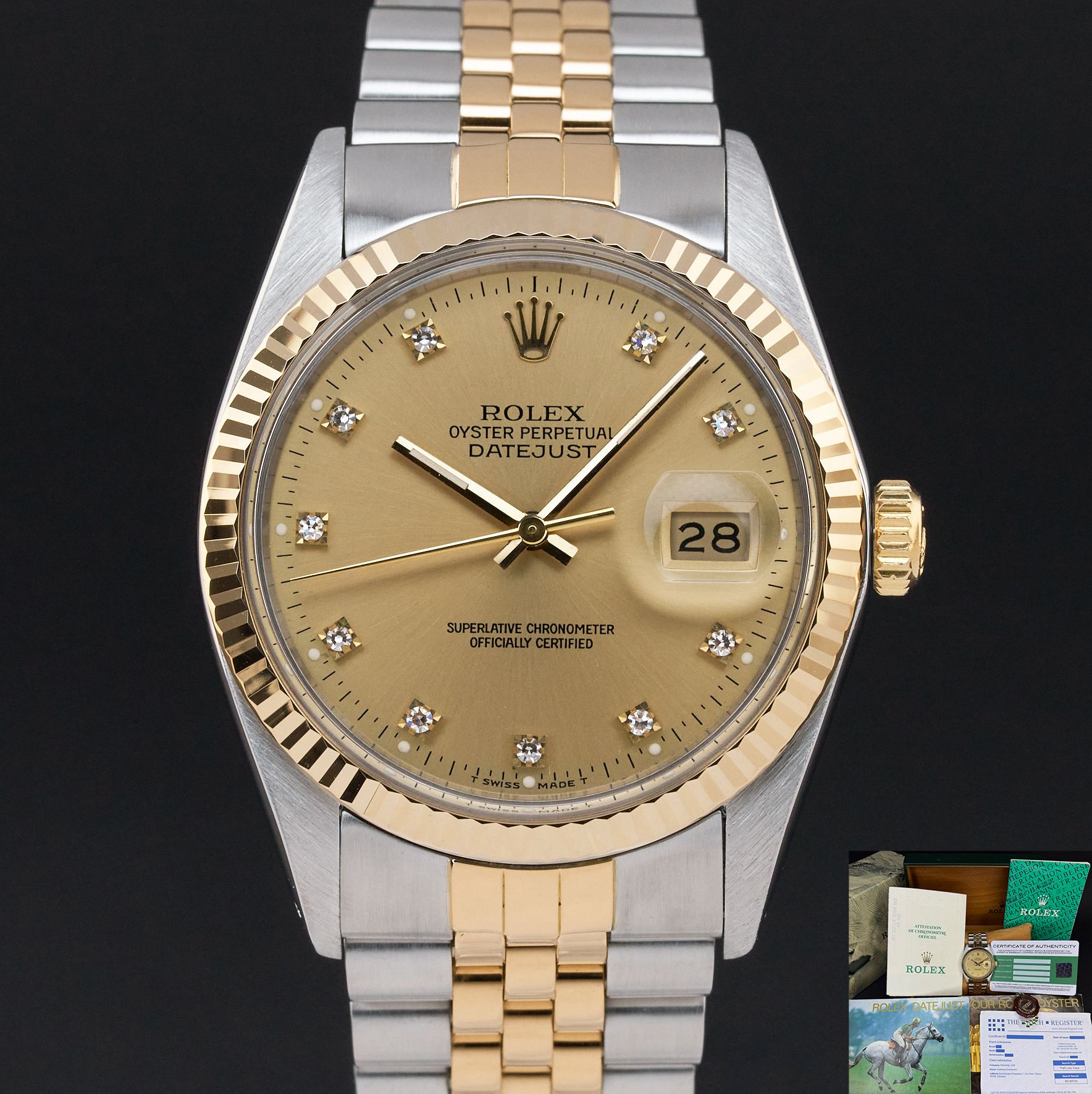 Rolex Datejust 36 Rolex Datejust, 16013, 36mm, 1987, Two-Tone, Champagne Small Diamond dial, Fullset, 1y warranty