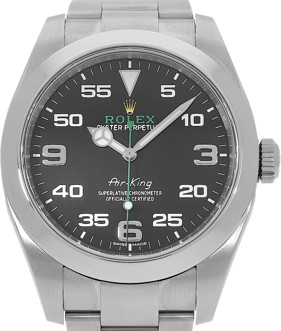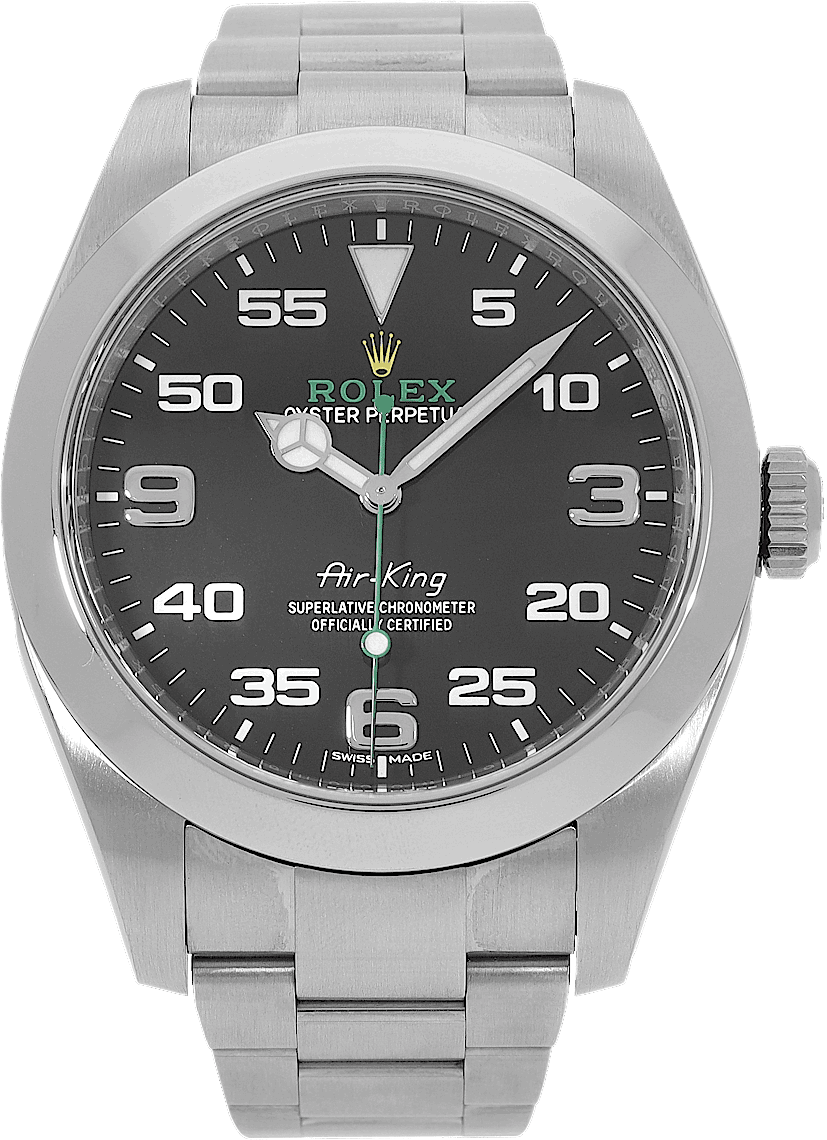 Rolex Air-King, Reference: 116900, Gender: Male, Size: 39mm, Dial color: Black, Strap material: Stainless Steel, Movement: Automatic, Year: 2019, Condition: Previously worn, minor to no signs of usage. The movement is flawless and the case has been cleaned. watch tested ensure full functionality. An inspection by our certified watchmakers guarantees its authenticity., Documents: Original papers, CHRONEXT Certificate