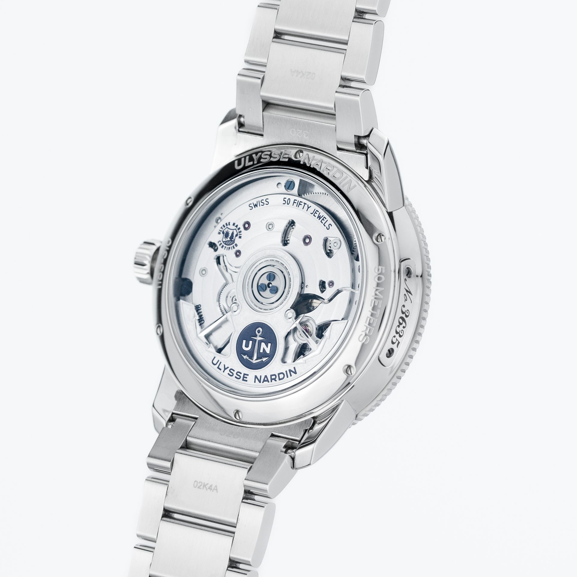 As you can probably guess, the brand owes its name to its founder Ulysse Nardin, who was born in 1823 in Le Locle, Switzerland. He initially trained in the art of watchmaking under his father, Leonard-Frederic Nardin, and later perfected his skills with two other masters, Frederic William Dubois and Louis JeanRichard-dit-Bressel. He established his own manufacture at the tender age of 23 in the distant year of 1846 and managed it single-handedly until his death in 1876, when control passed into the hands of his 21-year-old son, Paul-David Nardin. From those distant years to the present day, Ulysse Nardin has flourished, crafting some of the finest and most complex movements in the industry. A series of famous achievements and timepieces followed, with which the brand increasingly established itself as one of the major players in the watchmaking industry. Every self-respecting collector either has or at some stage of their hobby plans to have at least one representative of this manufacture in their collection. The Marine Torpilleur is a slightly different version of the incredible marine chronometers that were made for decades, and is undoubtedly a timepiece that continues the tradition and impeccably upholds its glorious heritage. The specific model was first introduced in 2016 and is current in the brand's model range, and this particular example is in the most "maritime"—at least in my opinion—combination with a blue dial with applied Roman numerals and a practical three-link bracelet (those of us who have had to buy a strap for a Ulysse Nardin will especially appreciate the fact that the bracelet will free them from this recurring expense). This timepiece does not have a distinctly modern feel, which most of today's manufacturers aim for in their contemporary models, but is rather sport-elegant and discreetly aristocratic. The double anti-reflective coating is so effective that at certain angles, it creates the impression that you can touch the dial and the hands with nothing to stop you. Ulysse Nardin makes no compromises with the case back of this model – on this model it is transparent, the model and serial numbers are engraved on its frame, and through the rear crystal, one is given the opportunity to enjoy the watch's movement, on the finishing of which Ulysse Nardin has put in a great deal of effort. In fact, the movement deserves special attention as this is the first movement entirely crafted by the manufacture in a long time, first introduced in 2012 – with many patents, materials developed specially for Ulysse Nardin (DIAMonSIL), 50 jewels, a 60-hour power reserve, and a unique finish that can be enjoyed through the transparent case back – even the rotor alone deserves a separate topic, but let's not bore you any further.