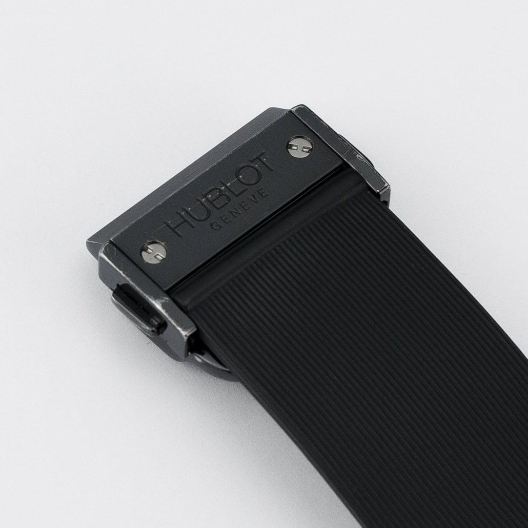 Through the transparent case back, we can enjoy the workings of the brand's in-house movement, the Hublot Calibre HUB 4100 – based on the well-known ETA 2894-2 automatic chronograph – with a power reserve of over 42 hours, operating at 28,800 vibrations and made of 252 parts and 27 jewels.