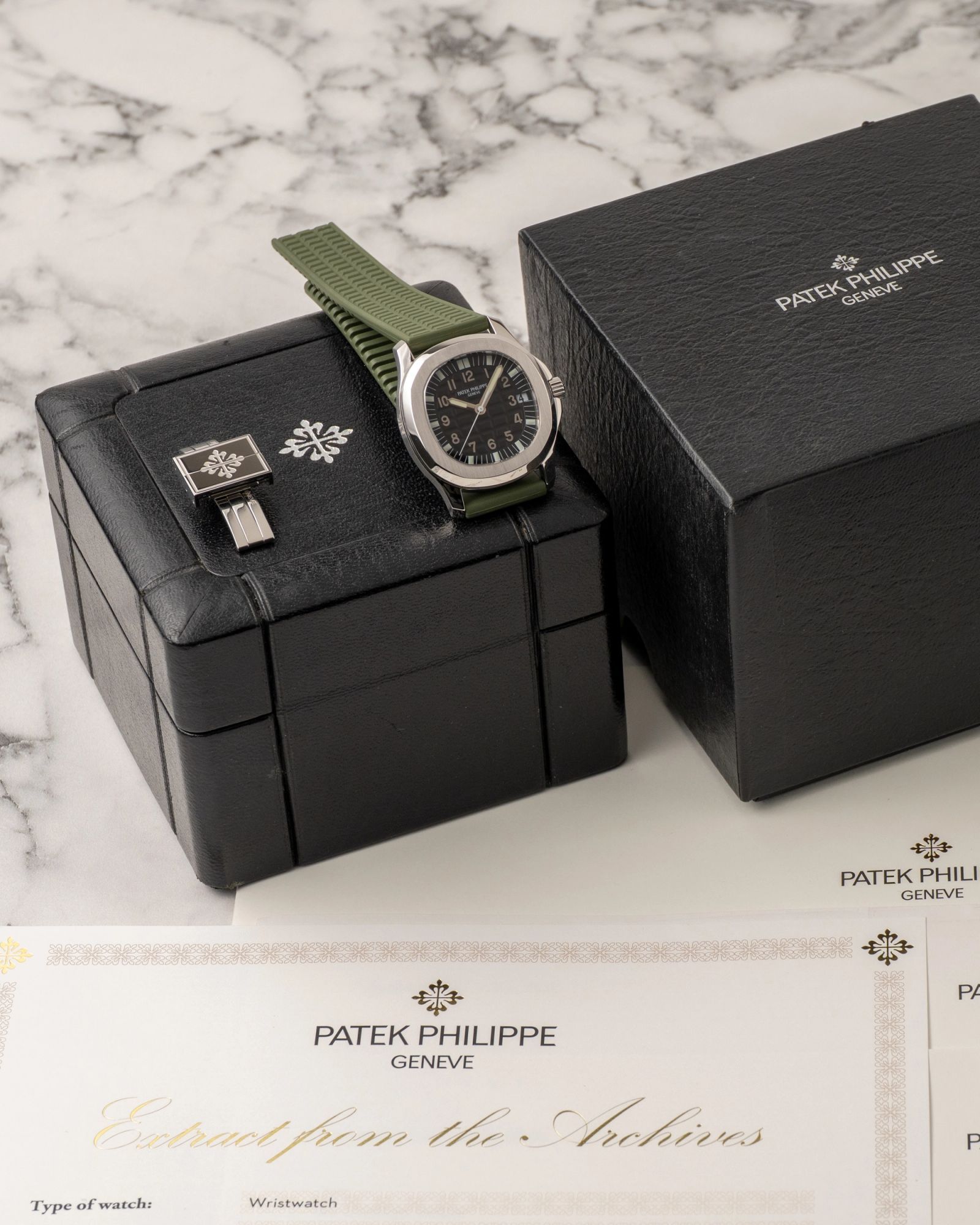 This complete Patek Philippe Aquanaut reference 5066A in stainless steel is accompanied by the inner- and outerbox and the Extract from the Archives, confirming its sale on December 20th 2005.The Aquanaut 5066A represents one of the most balanced and wearable executions within the early Aquanaut lineage. Its 36 mm case offers a highly versatile presence on the wrist, which makes it suitable for both formal and casual settings. Introduced during a period when Patek Philippe explored a more contemporary sports aesthetic, the 5066A retains the brand’s unmistakable elegance while embracing a modern identity.