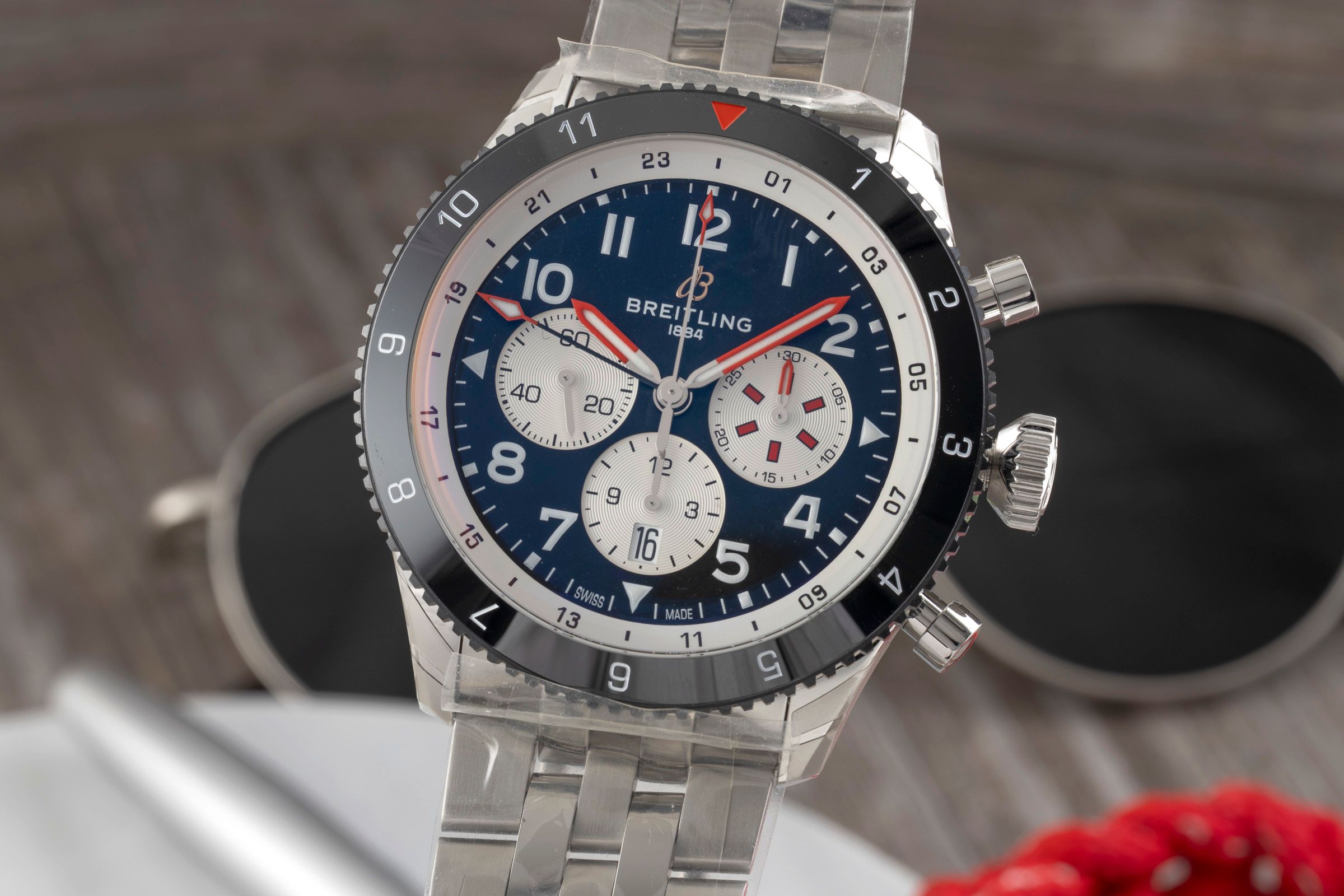 Alternative title: Breitling YB04451A1B1A1 Super AVI B04 Chronograph GMT 46 Mosquito / Bracelet; Breitling Super AVI B04 Chronograph GMT 46 Mosquito Ref. YB04451A1B1A1 B&P [2601332]