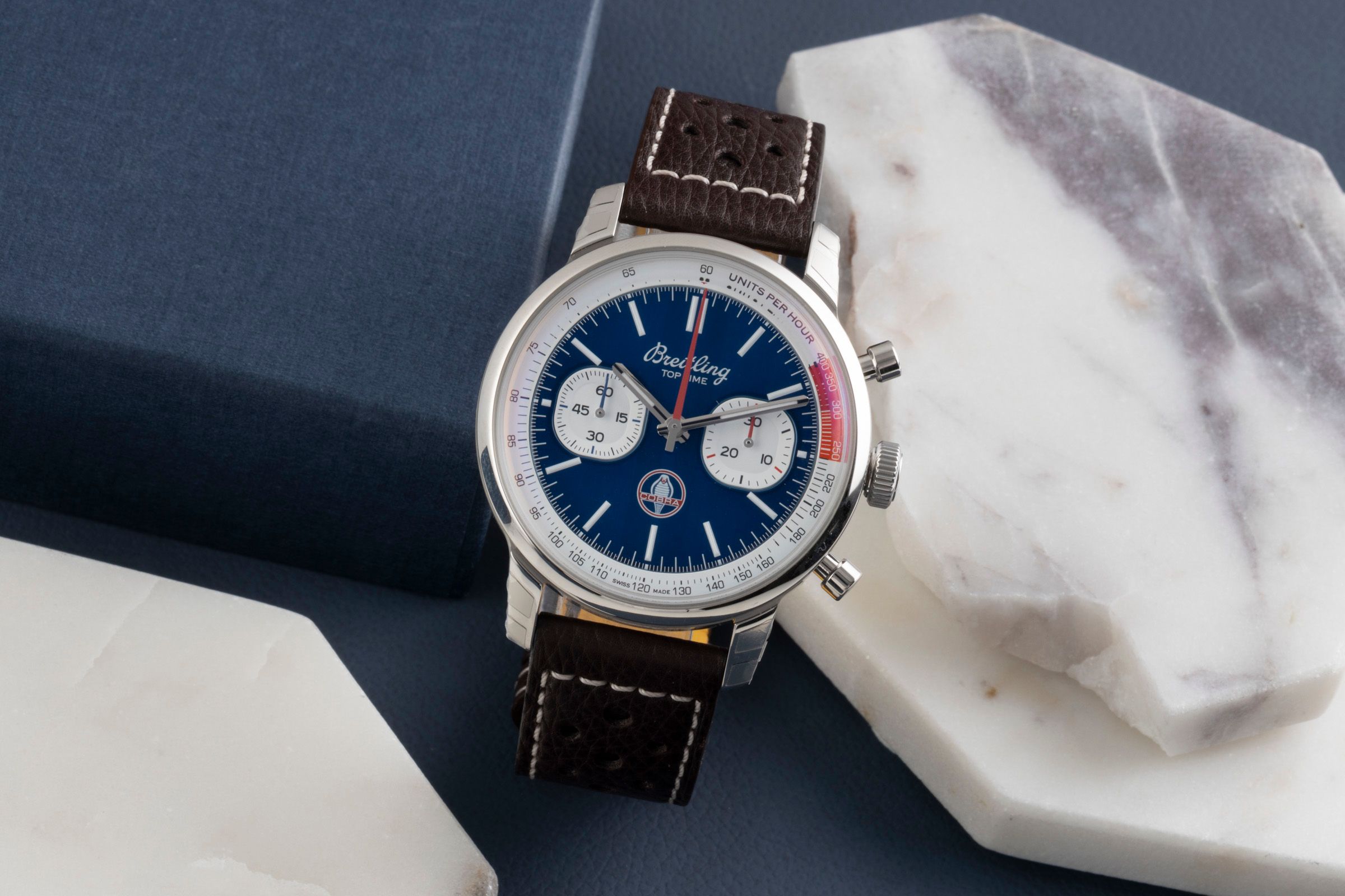 Titre alternatif : Breitling AB01763A1C1X1 Top Time Shelby Cobra / Veau ; Breitling Top Time Shelby Cobra Automatik Ref. AB01763A1C1X1 B&P NP : 7650,- € [2601354]