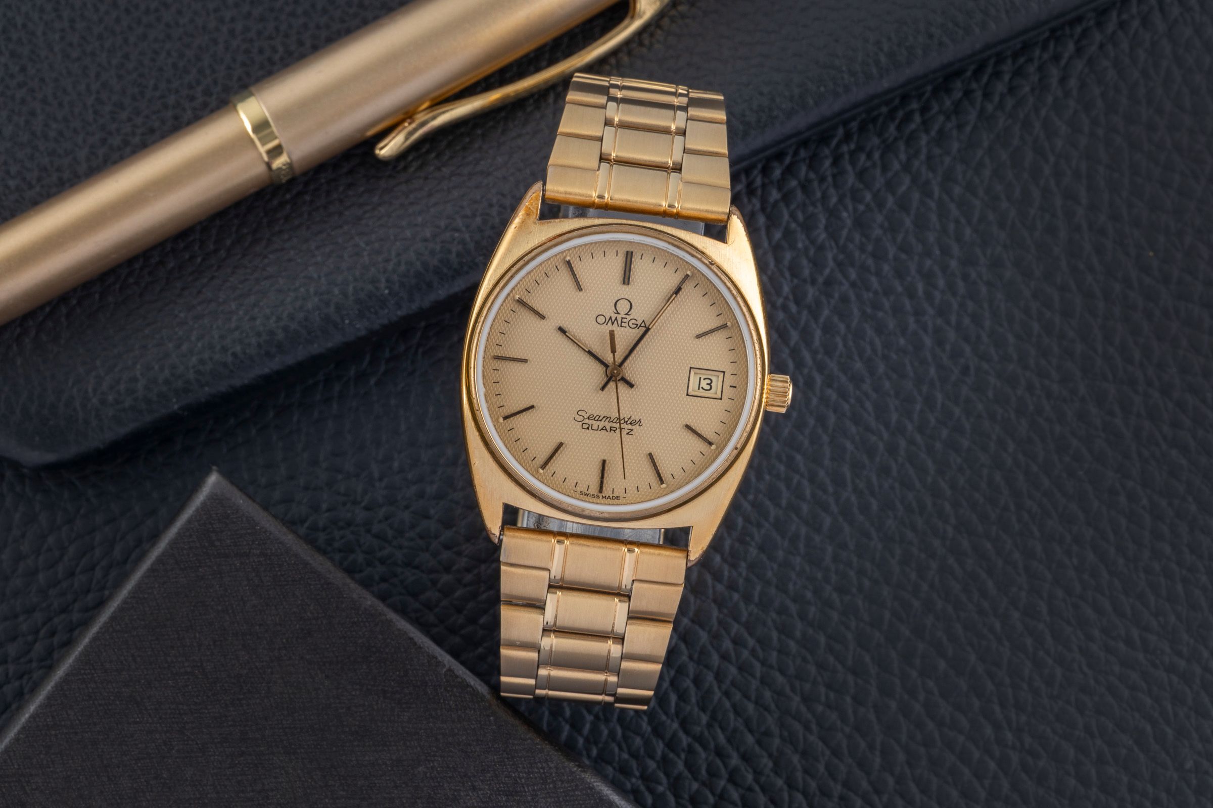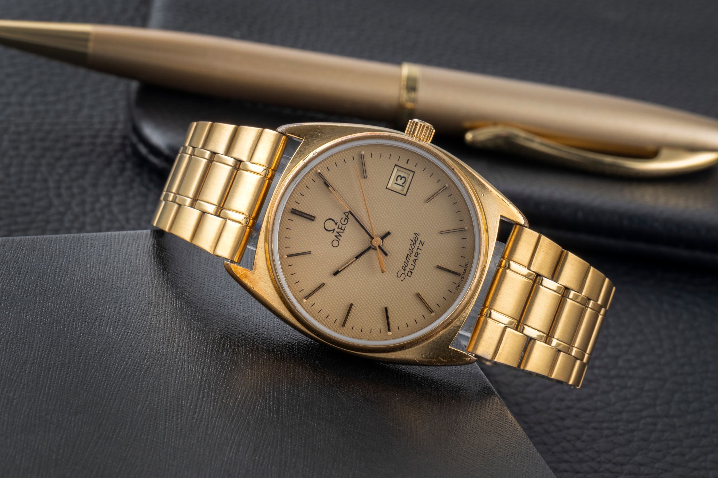 Omega Seamaster gilt-brass quartz men's watch 196.186 396.0910 Vintage