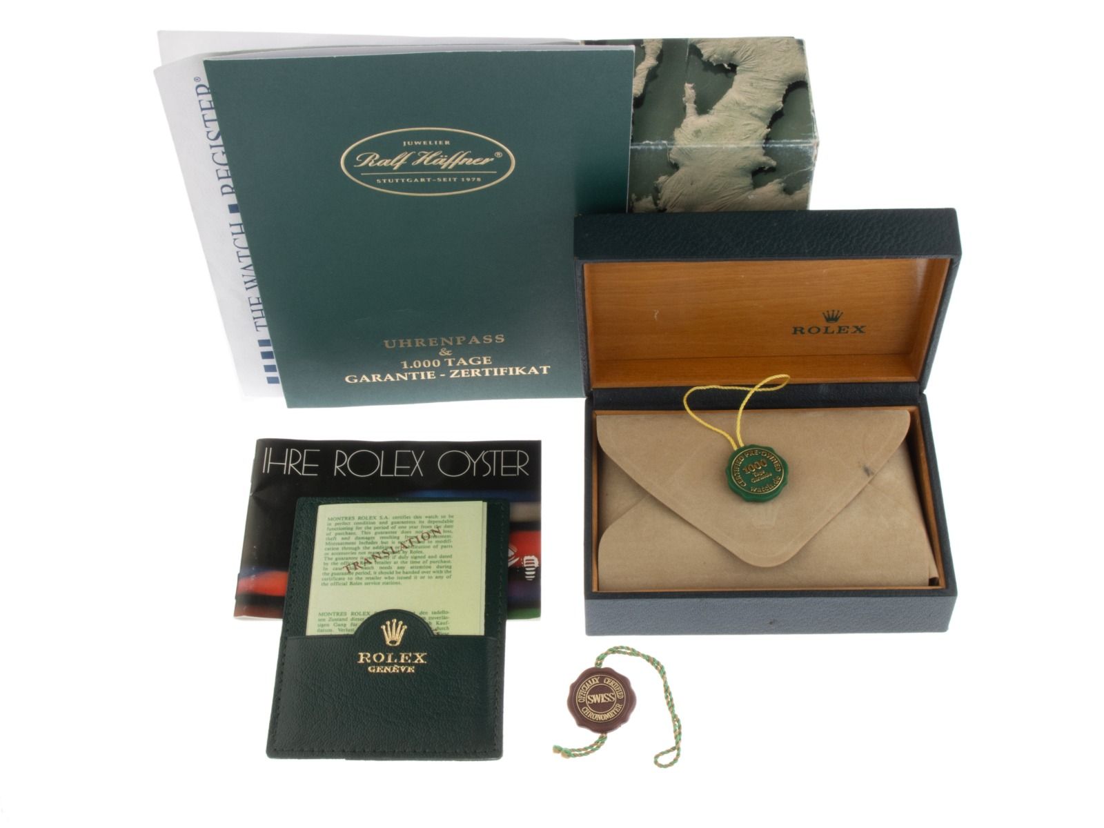 Inklusive certified pre owned Siegel / Uhrenpass mit einem Farbbild, der genauen Beschreibung sowie dem Wiederbeschaffungswert der Uhr über 16900,-€ und 1000 Tage Garantie ab Kaufdatum.