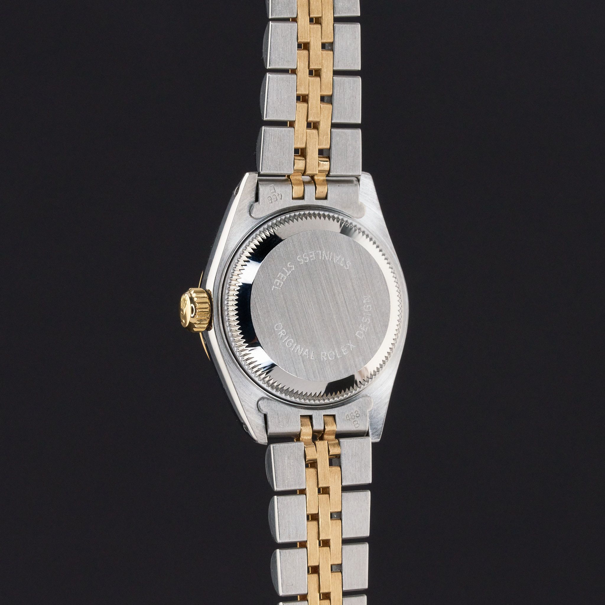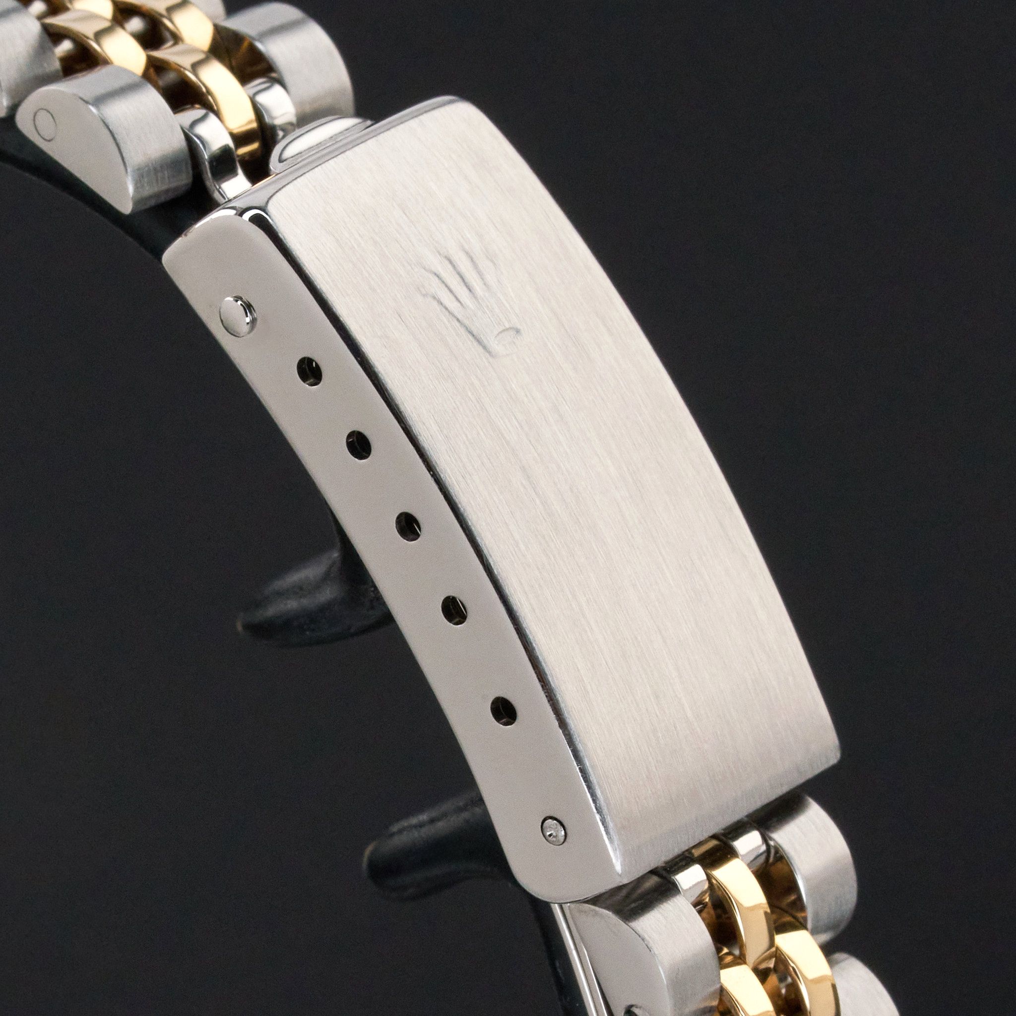 This Rolex Lady-Datejust 69173 features a Champagne Roman small diamond dial and is crafted from 18K yellow gold and stainless steel, with a production year of 1989.Case No: L84XXXX