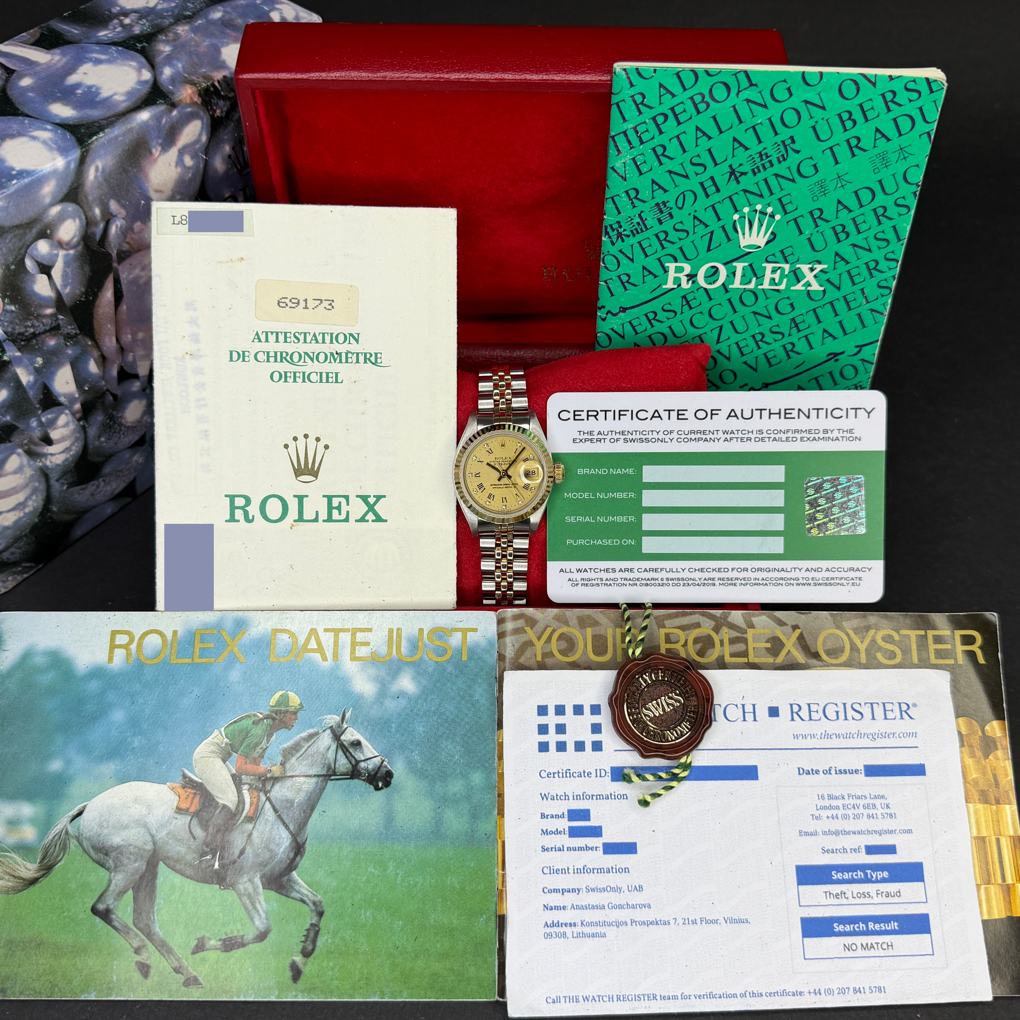 Rolex Lady Datejust, 69173, 26mm, 1989, Two-Tone, Champagne Roman Small Diamond dial, Fullset, 1y warranty