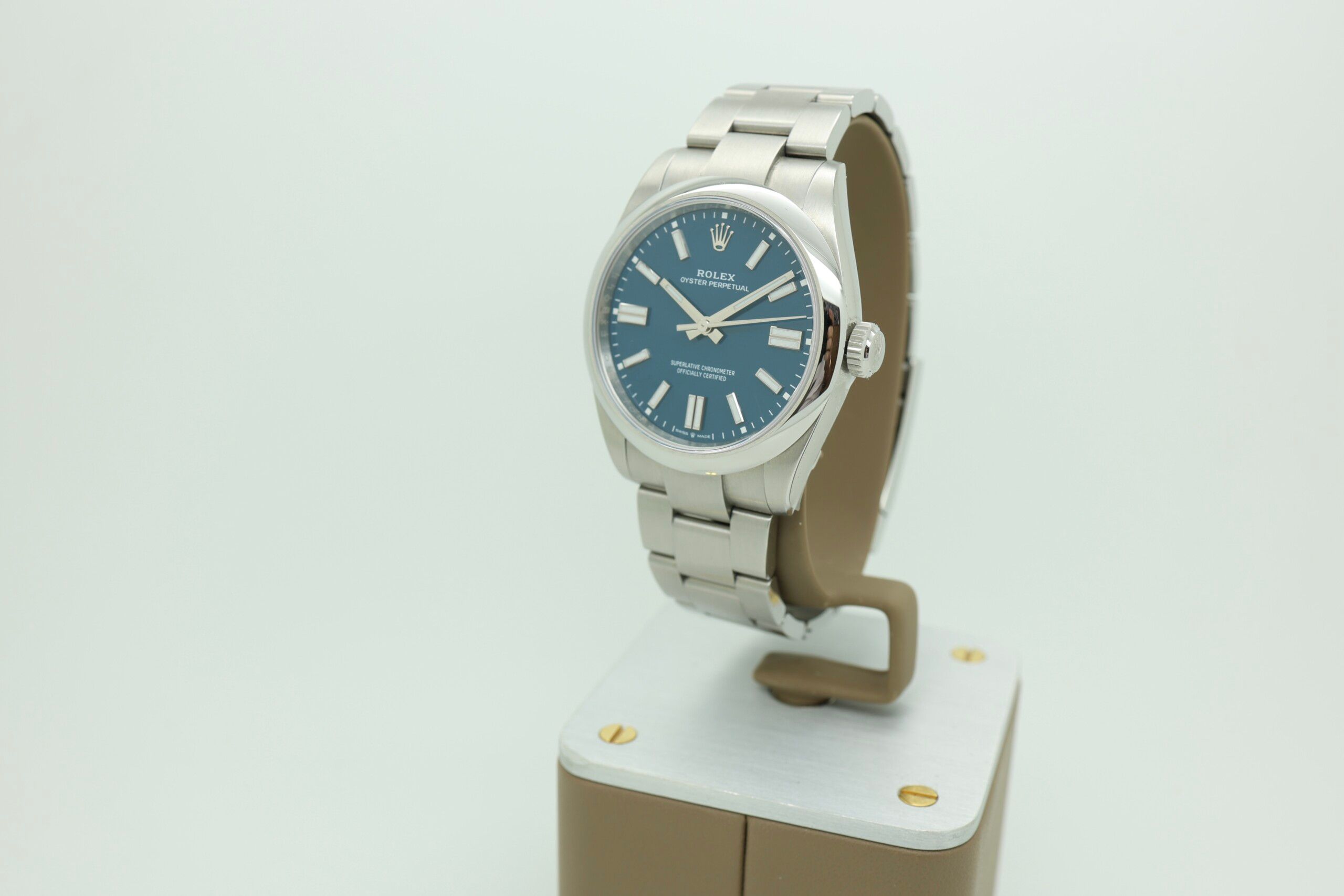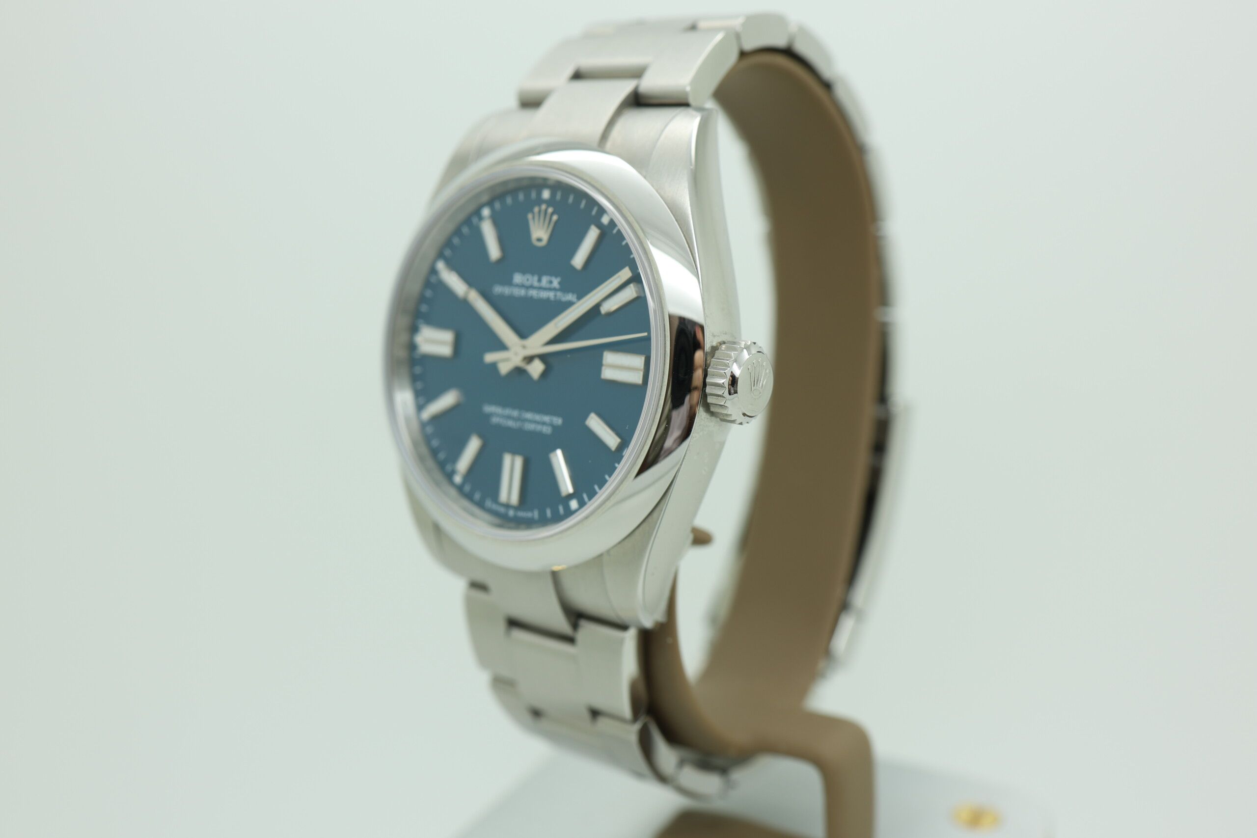 Rolex Oyster Perpetual 41 134300 (2025) – Full Set, with Bright Blue DialExperience pure Rolex elegance with this brand new Rolex Oyster Perpetual 41 reference 134300, offered as a complete full set and presented in unworn condition. Crafted from Rolex’s signature Oystersteel, the 41 mm case showcases a perfect balance of robustness and refined simplicity. At its heart beats the advanced Rolex Calibre 3230, a high-performance automatic movement delivering a 70-hour power reserve and exceptional precision, enhanced by the Chronergy escapement.
