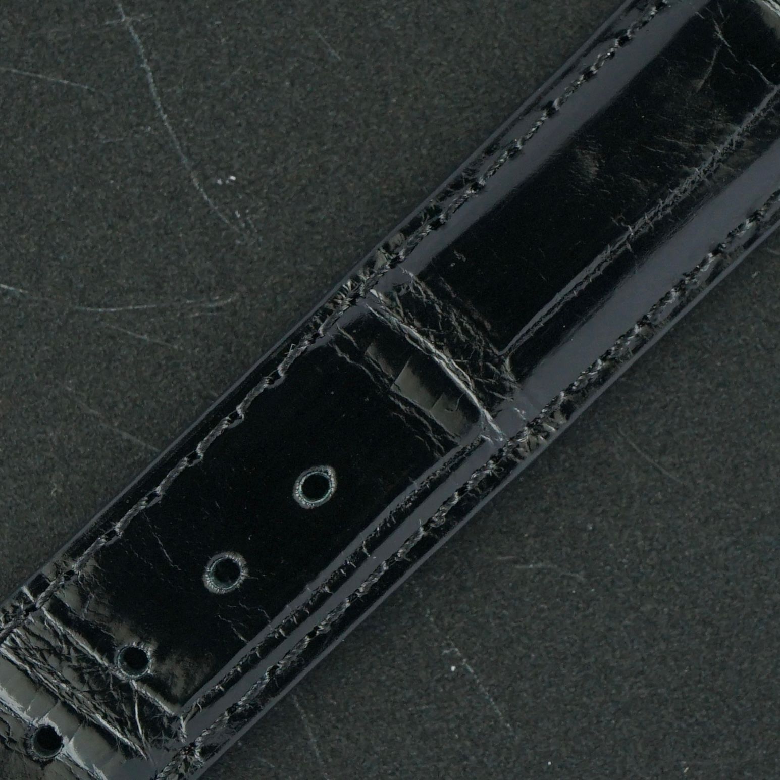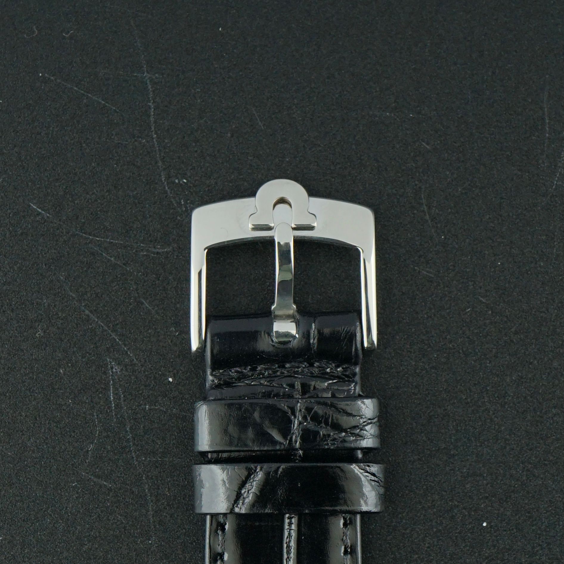 Strap: A top-grain black leather strap with a crocodile motif. (Fits a 12 to 20cm wrist)