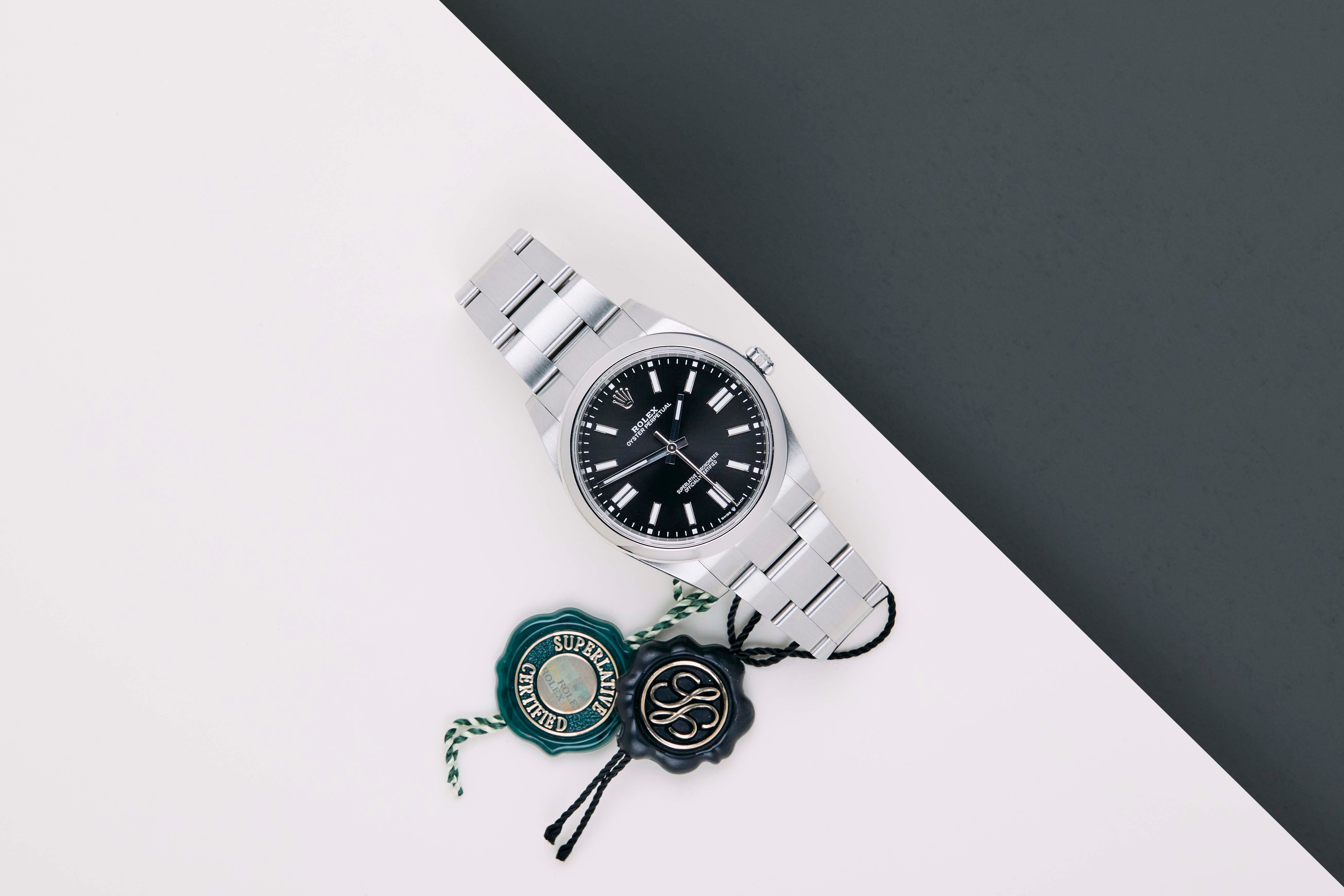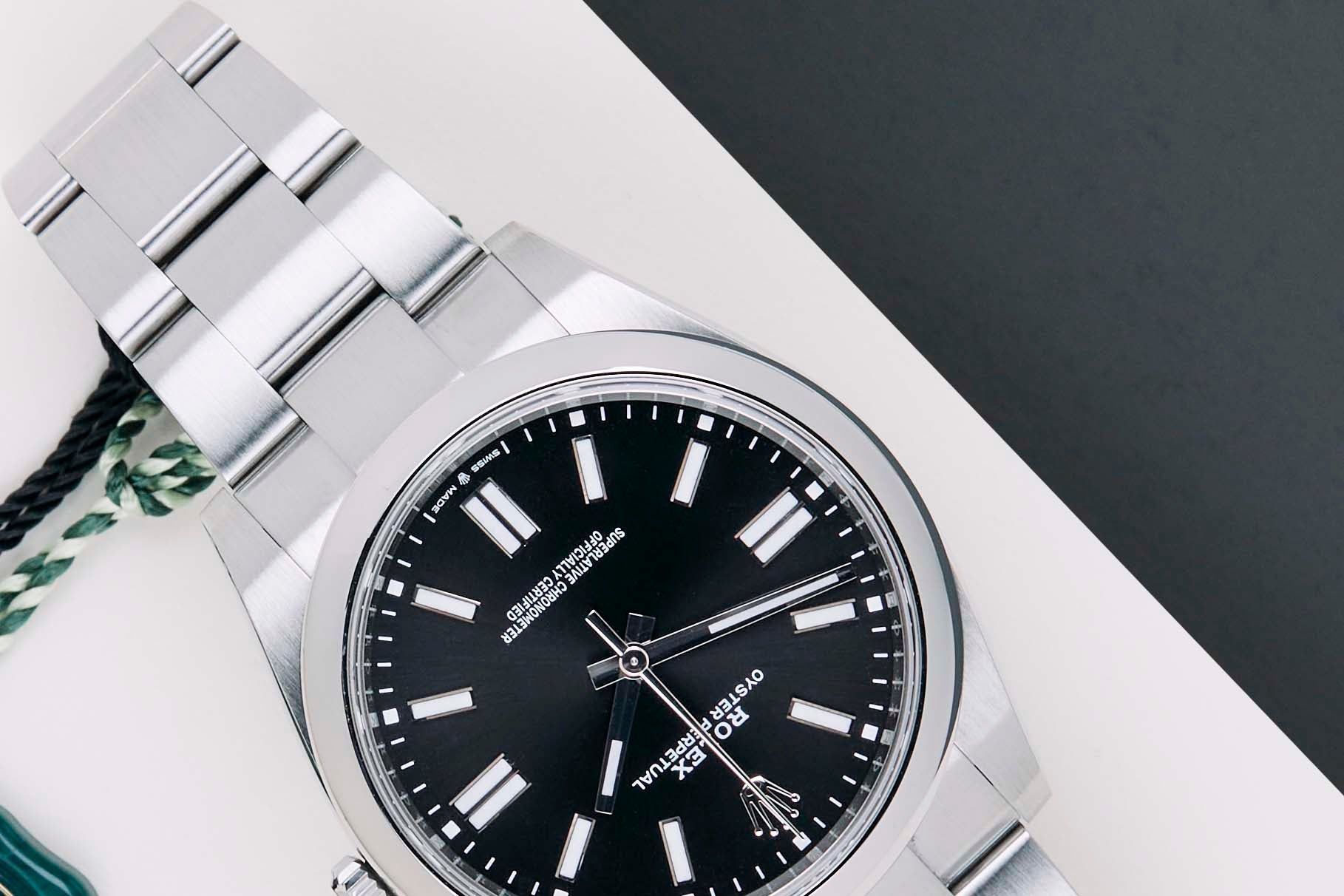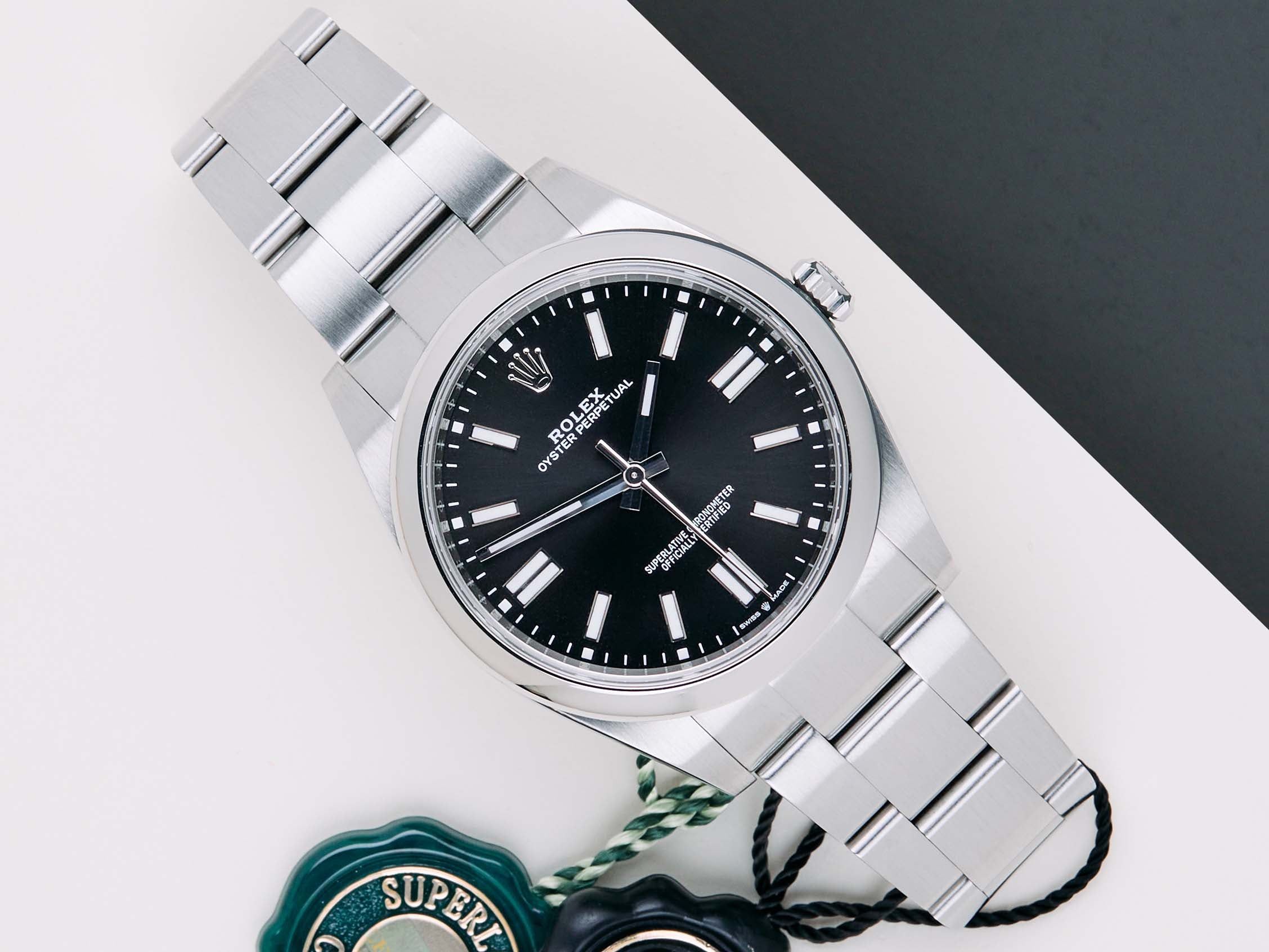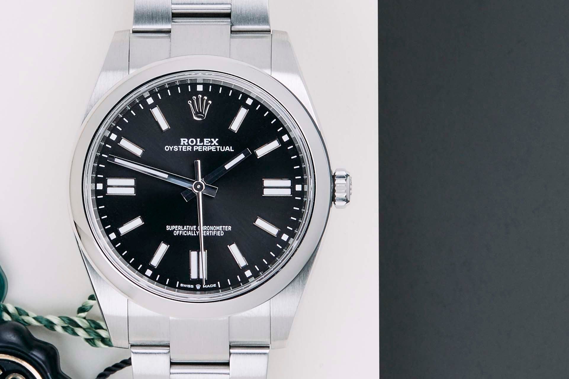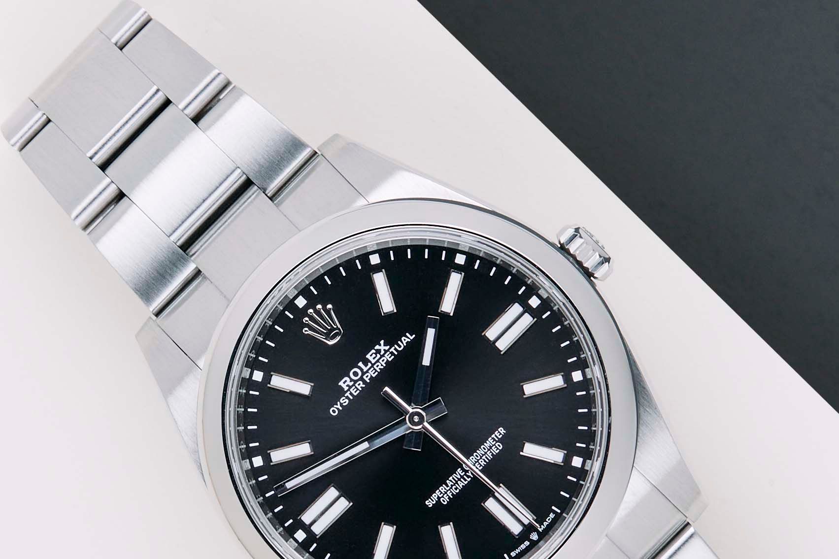 Full Set | International Rolex Warranty Until September 2026 The Rolex Oyster Perpetual was first introduced by Rolex in the 1930s. It is characterized by its water-resistant Oyster case and self-winding Perpetual movement. The Rolex Oyster Perpetual a simple, yet elegant timepiece that is suitable for both casual and formal wear.This Rolex Oyster Perpetual 'Black Dial' was sold for the first time in September 2021.The watch is fully made out of stainless steel. Rolex uses 904L in its steel watches, which is an extremely resistant and highly polishable superalloy.This Rolex Oyster Perpetual 41 is in Mint Condition and comes with the original Rolex Warranty Card and box. Furthermore, this watch is checked by our watchmaker and therefore comes with One Year of Steiner Warranty.