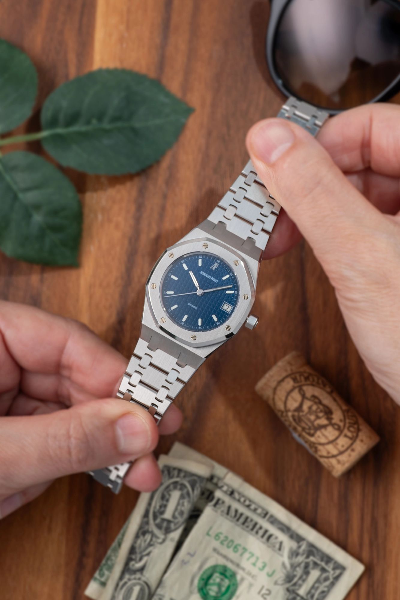 Ce calibre 2225 est en parfait état de fonctionnement et a été révisé. Le boîtier et le bracelet intégré sont également en parfait état grâce à un traitement de polissage ultra léger. La boucle déployante construite avec le logo AP étiré est une véritable pièce d'art fonctionnelle.