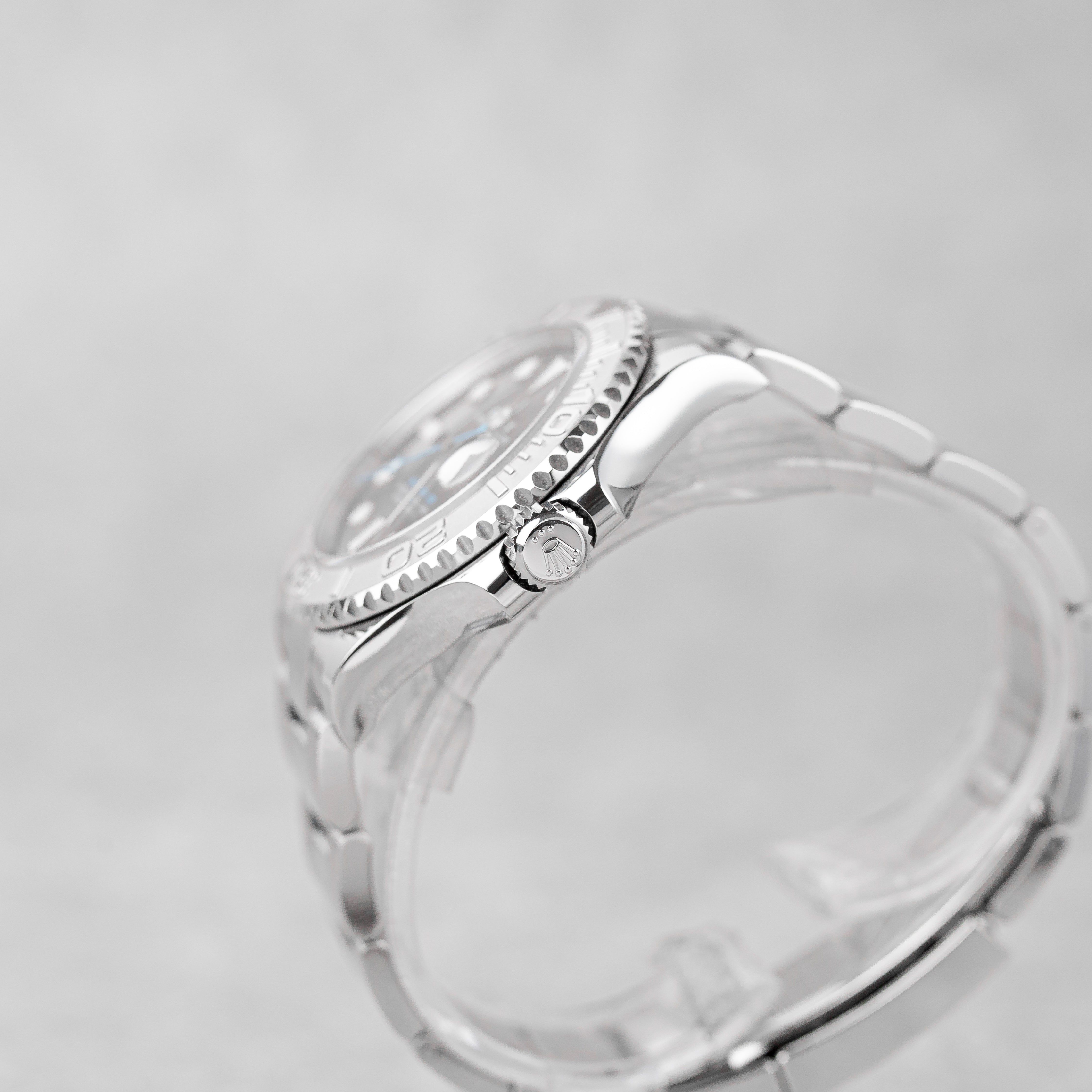 Cette Rolex Yacht-Master 40 Réf. 126622 présente un magnifique cadran en rhodium avec un effet soleil et une aiguille des secondes bleu glacier vibrante, associé au boîtier et à la lunette en Rolesium — une combinaison emblématique de platine et d'acier. Livrée en ensemble complet depuis 04/2023, elle est en état comme neuf et est accompagnée de la garantie internationale Rolex jusqu'en 04/2028. Une pièce de luxe raffinée et sportive, parfaite tant pour un usage quotidien que pour les collectionneurs à la recherche de l'une des configurations de Yacht-Master les plus polyvalentes.