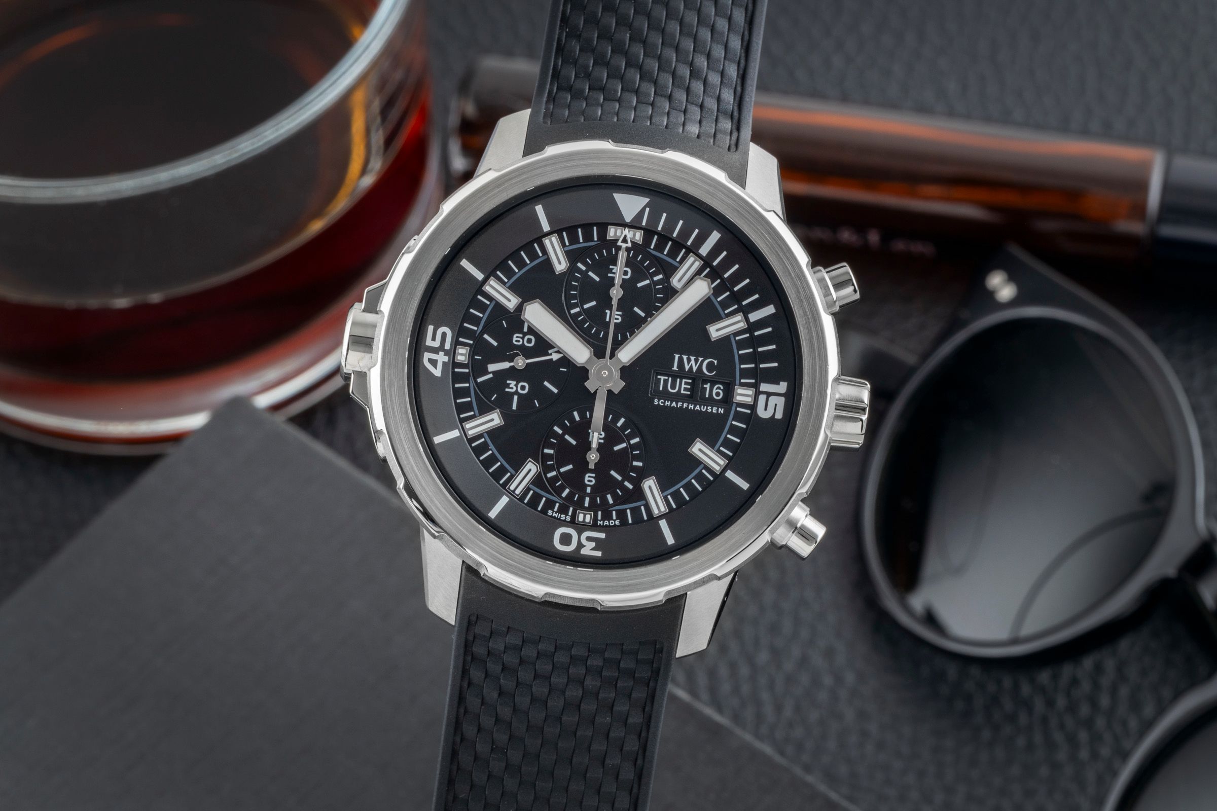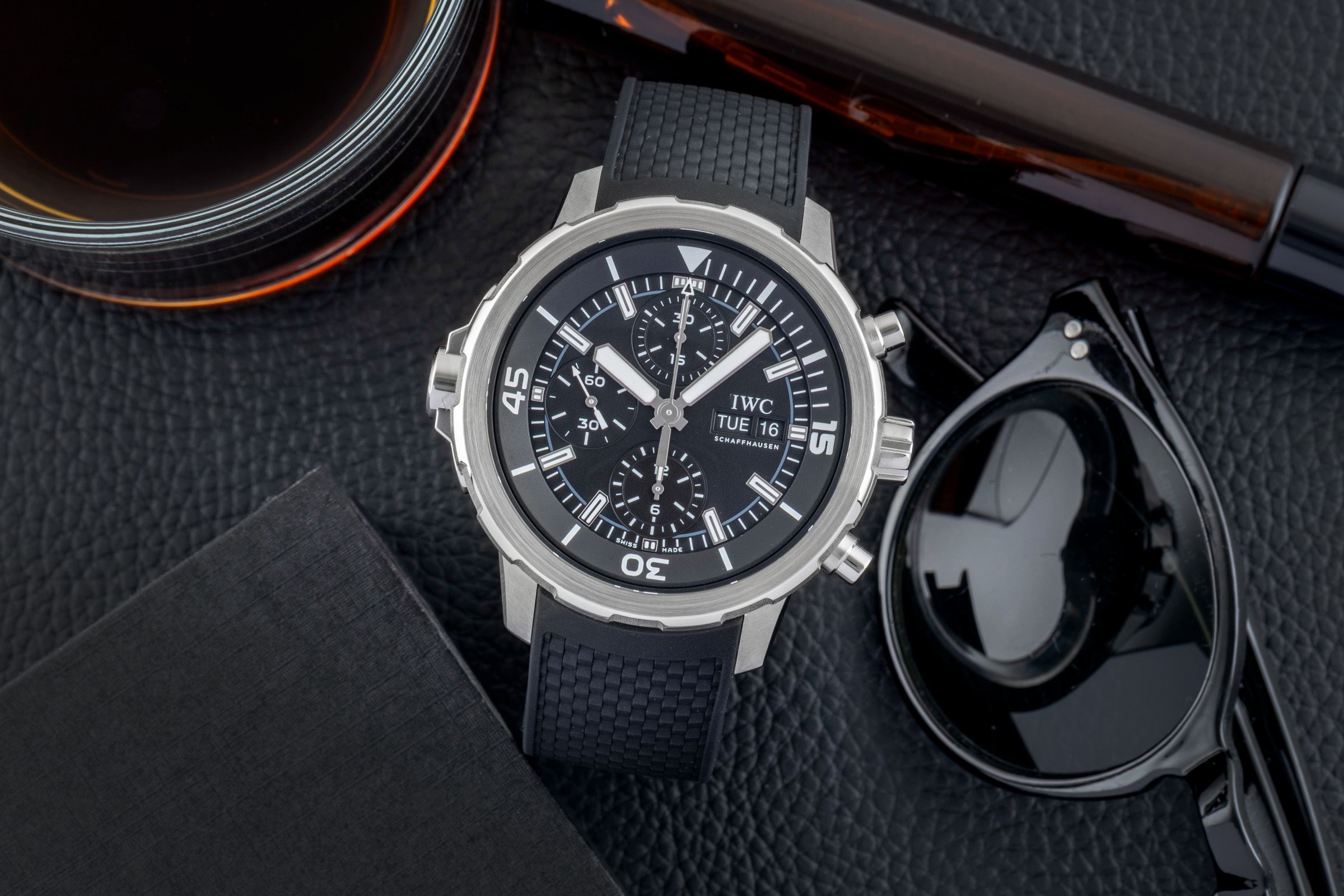 Titre alternatif : IWC IW376803 Aquatimer Chronographe Acier Inoxydable / Noir / Caoutchouc ; IWC Aquatimer Chronographe Cadran Noir Acier Inoxydable Réf. IW376803 B&P 2018 [2601654]