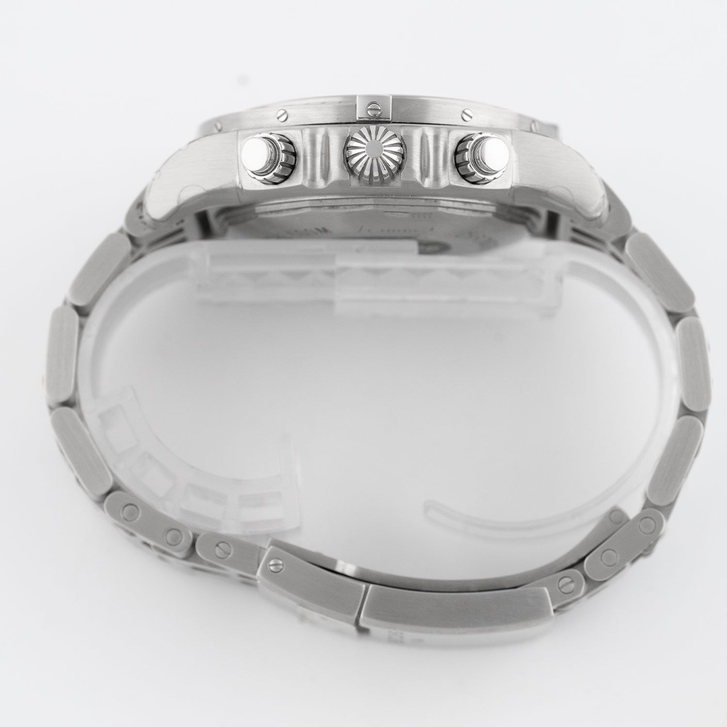 - Légères traces d’usure telles que de fines rayures ou micro-rayures. Le boîtier, la lunette et le bracelet conservent leurs arêtes nettes et leur forme générale. Peut avoir été poli professionnellement sans altérer les contours d’origine. Entièrement fonctionnelle mécaniquement.