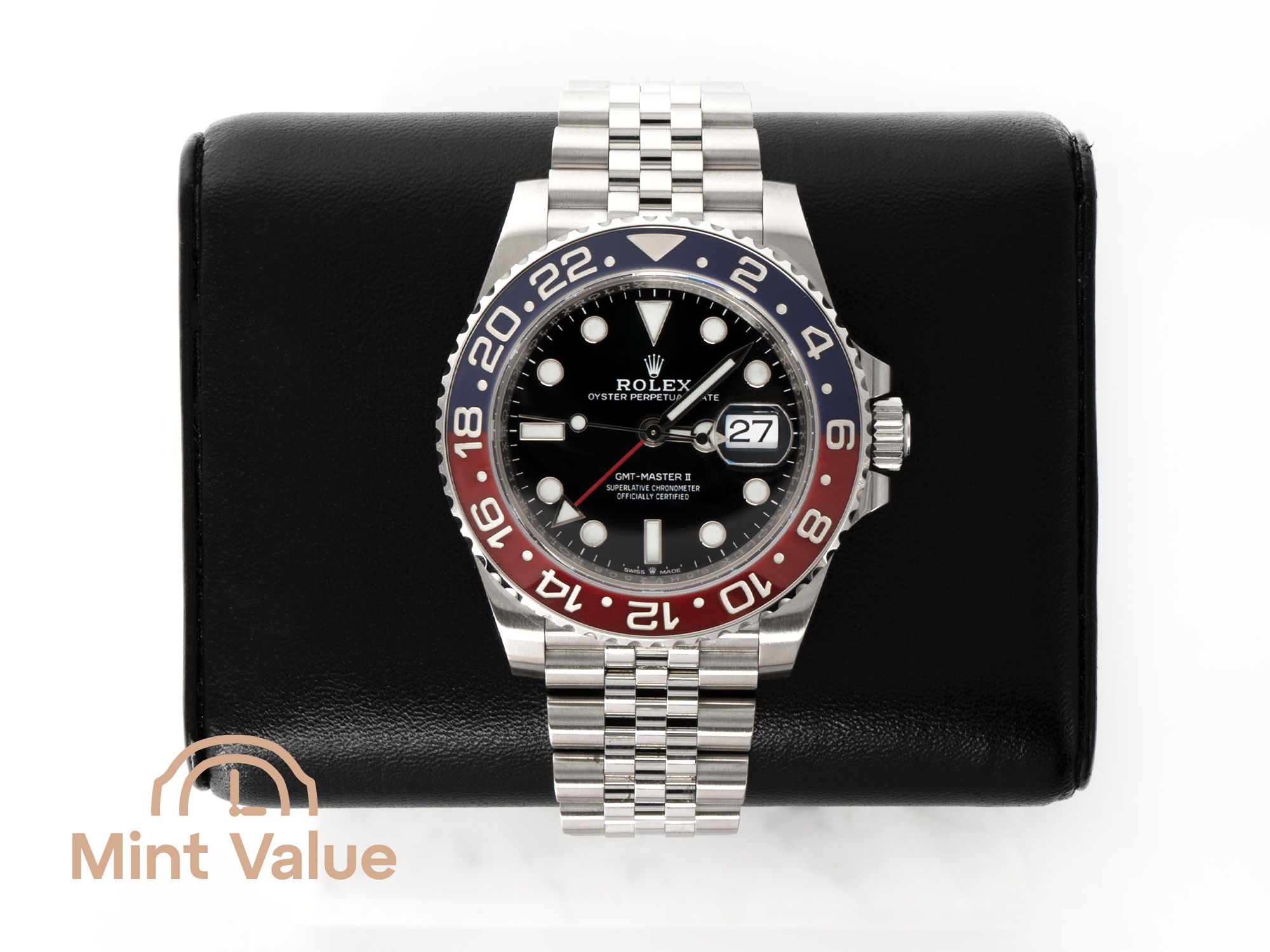 The “Pepsi” bezel is deeply tied to Rolex’s aviation history and remains one of the most emblematic combinations in watchmaking. Its enduring popularity and limited availability make this reference highly desirable among collectors.