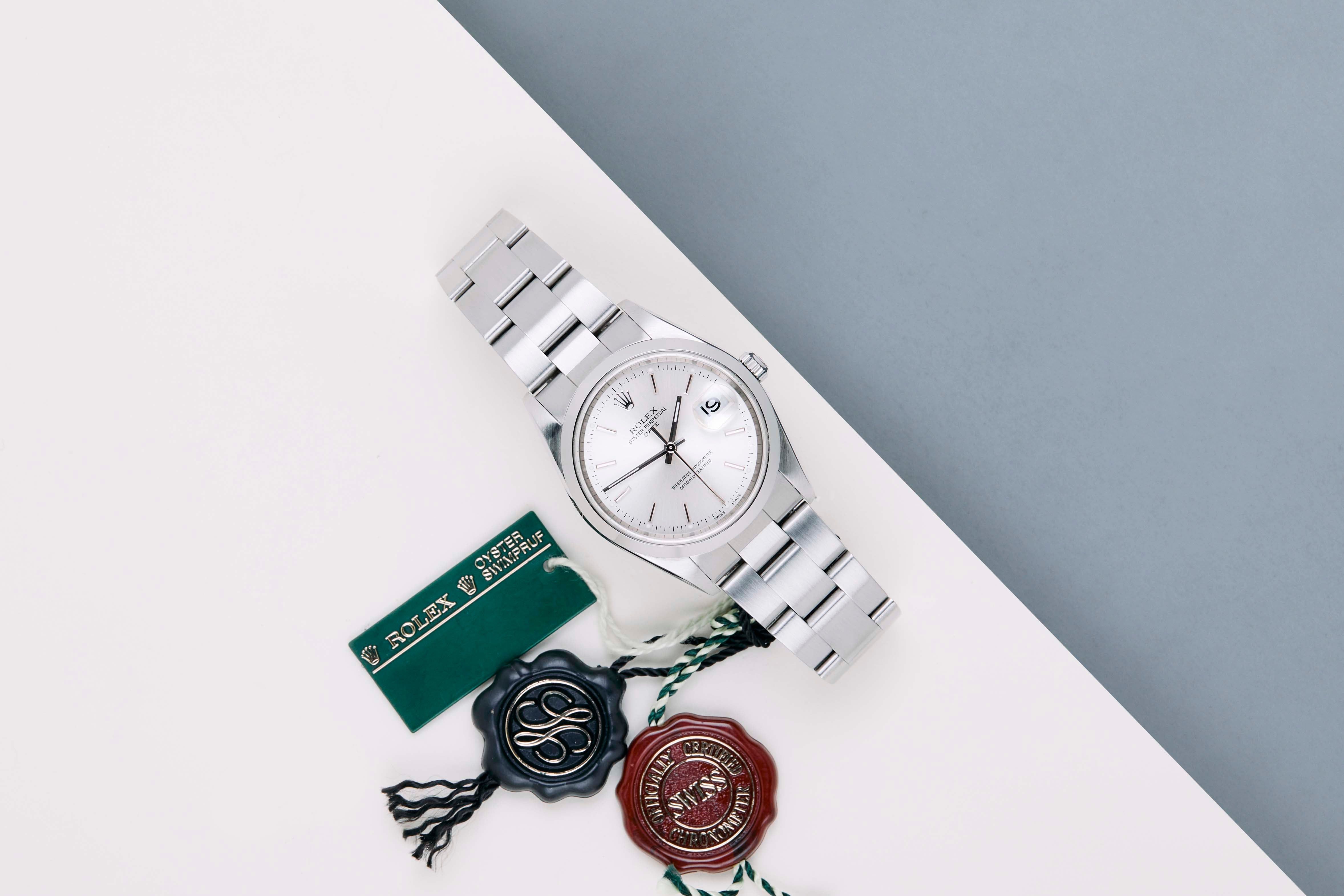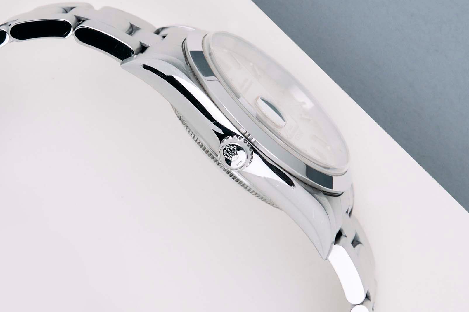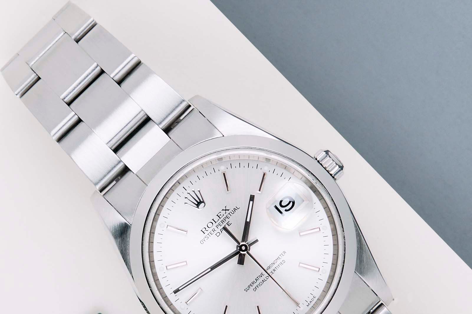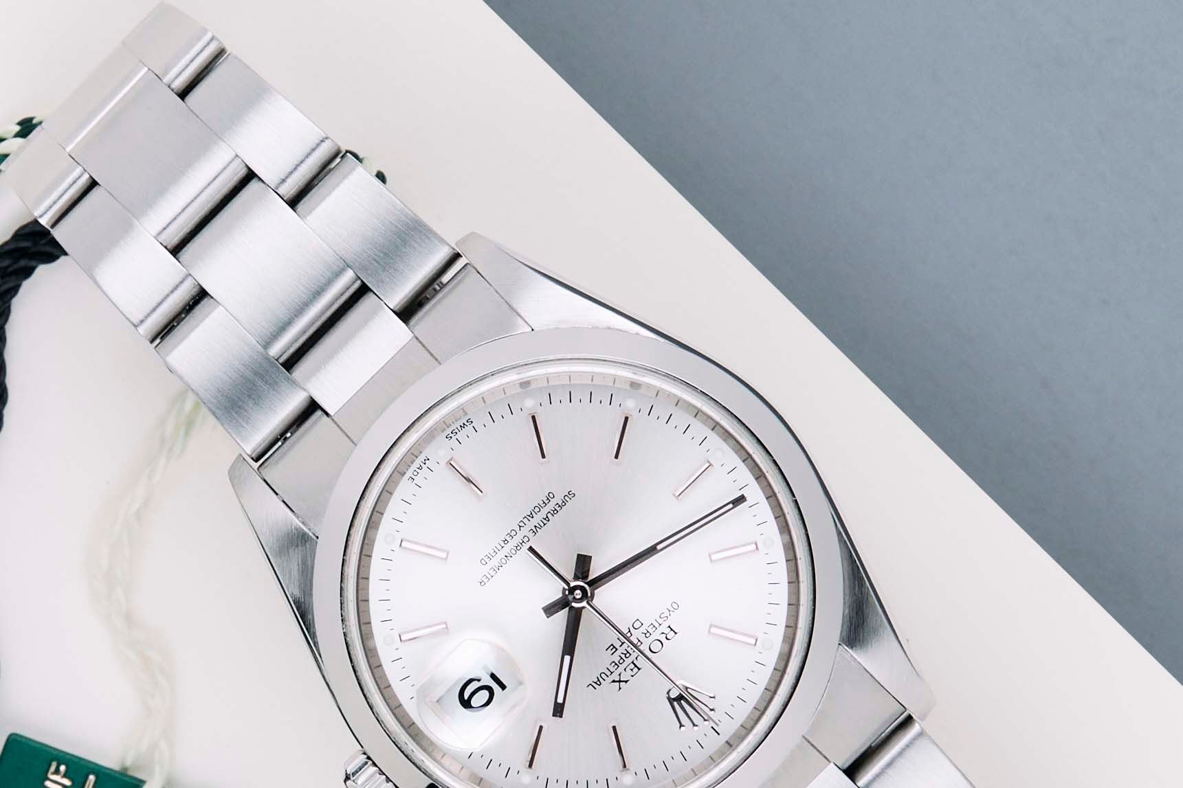 Full Set | Including Rolex Green TagThe Rolex Date was introduced in the 1950s as the slightly smaller and more utilitarian brother of the iconic Datejust.This Rolex Date 34 'Silver Dial' was sold for the first time in June 2006.This Rolex Date features a stainless steel case with a diameter of 34mm, a Silver dial with 18ct. White Gold hour markers and hands, and a stainless steel bracelet with a folding clasp. This generation of Date is known for its reliability and accuracy, as well as its timeless design.This Rolex Oyster Perpetual Date is in Mint condition and comes with the original Rolex Warranty Papers and Box. Furthermore, the watch has been serviced by our watchmaker, and therefore it comes with One Year of Steiner Warranty.