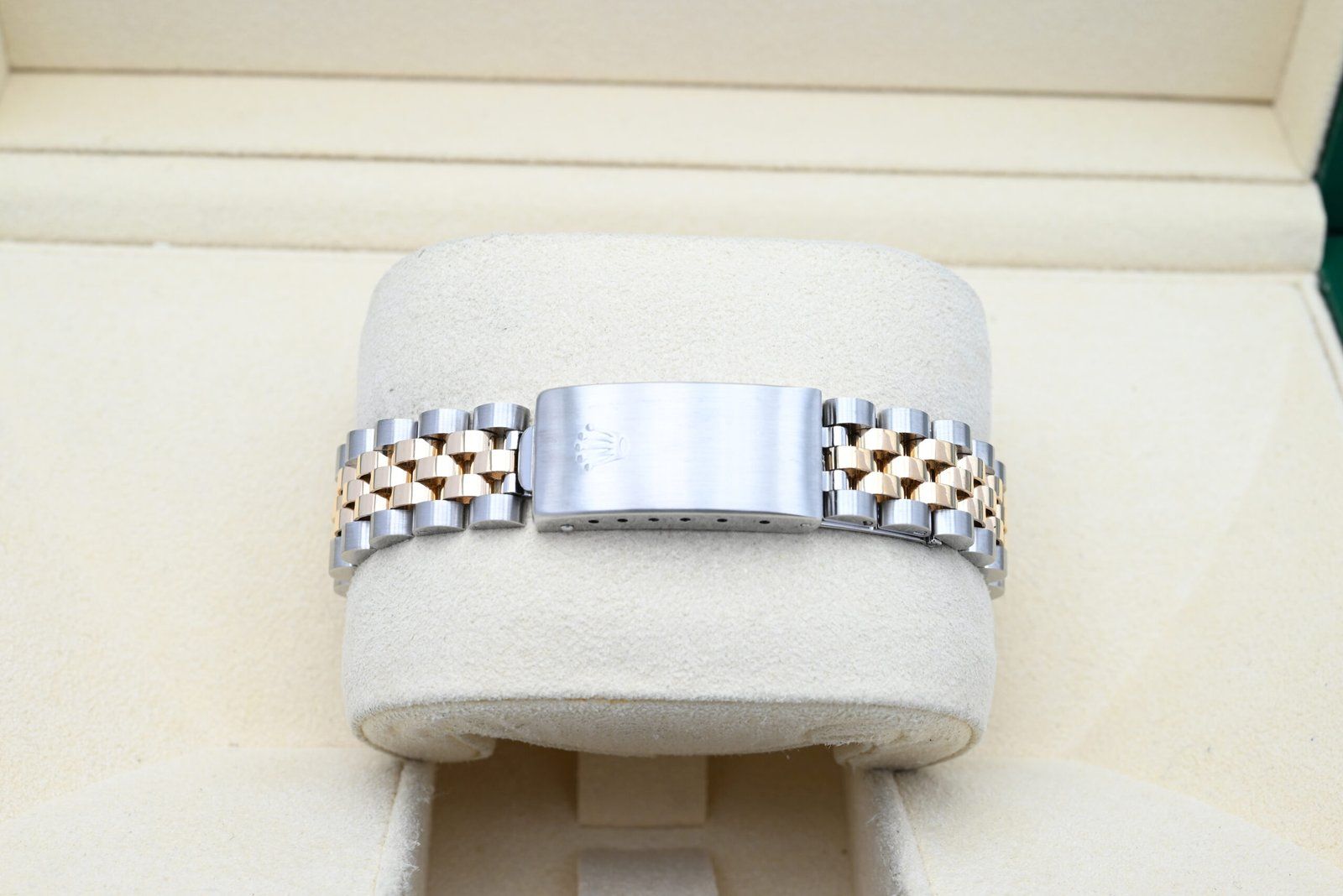 - Légères traces d’usure telles que de fines rayures ou micro-rayures. Le boîtier, la lunette et le bracelet conservent leurs arêtes nettes et leur forme générale. Peut avoir été poli professionnellement sans altérer les contours d’origine. Entièrement fonctionnelle mécaniquement.