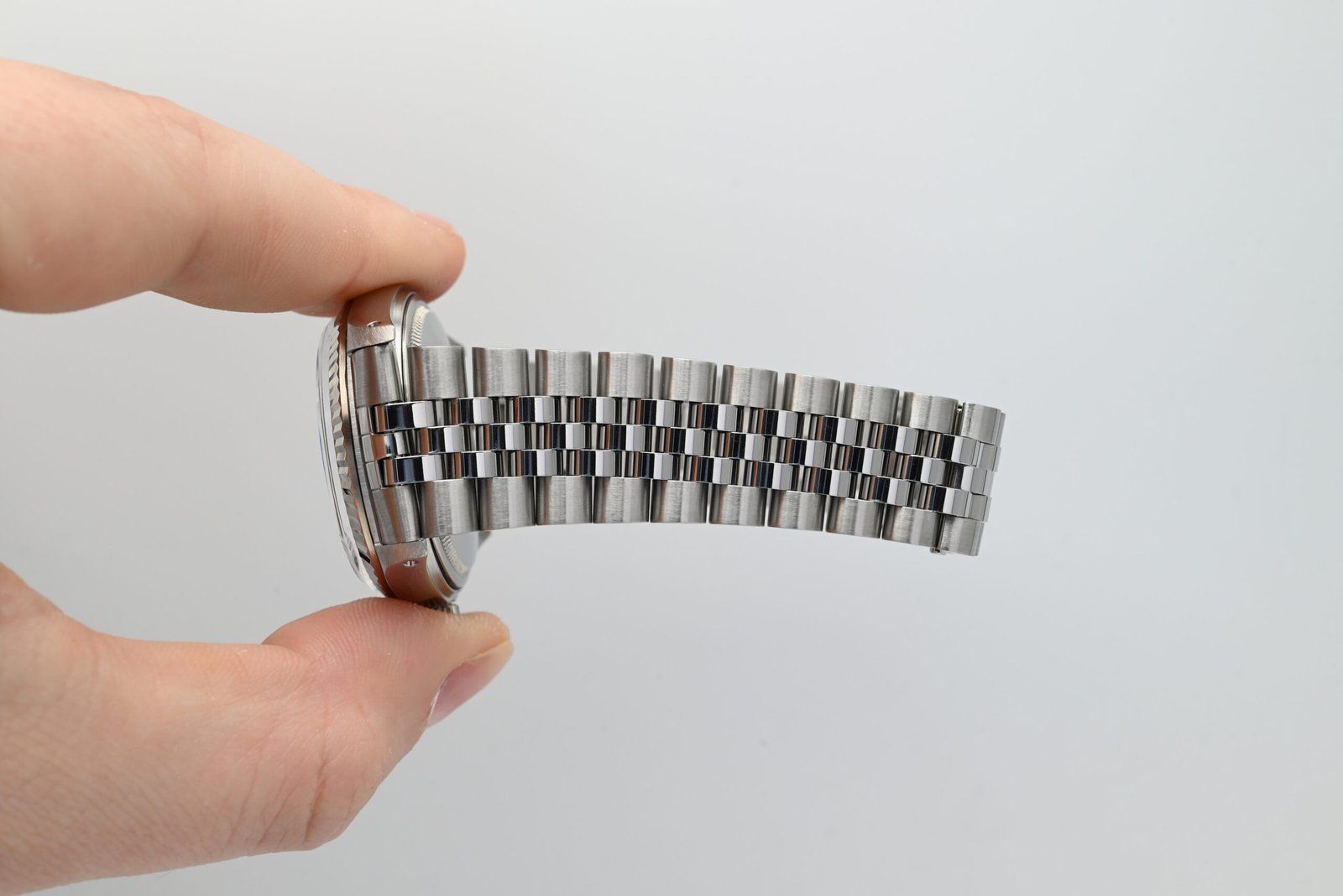 - Légères traces d’usure telles que de fines rayures ou micro-rayures. Le boîtier, la lunette et le bracelet conservent leurs arêtes nettes et leur forme générale. Peut avoir été poli professionnellement sans altérer les contours d’origine. Entièrement fonctionnelle mécaniquement.