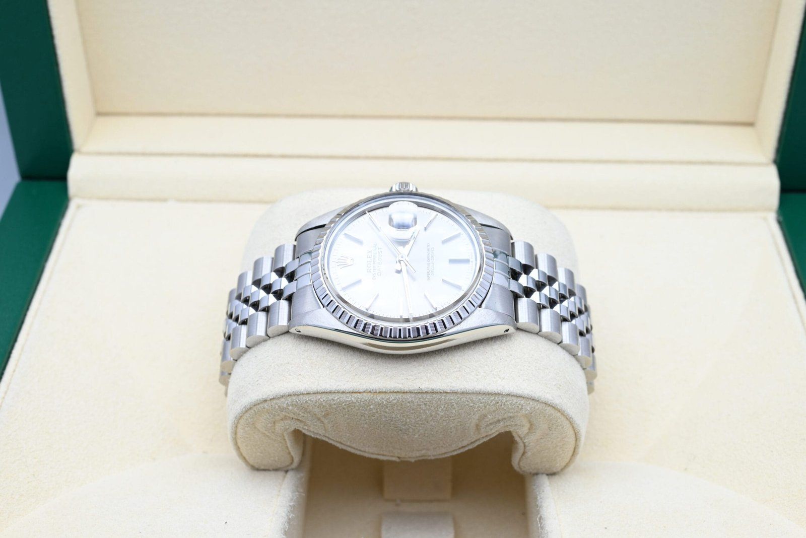 Rolex Datejust Ref. 16030 from 1980 with the grey dial in excellent condition including the original box and papers. All of our watches have been thoroughly checked by our own watchmaker and serviced when needed.