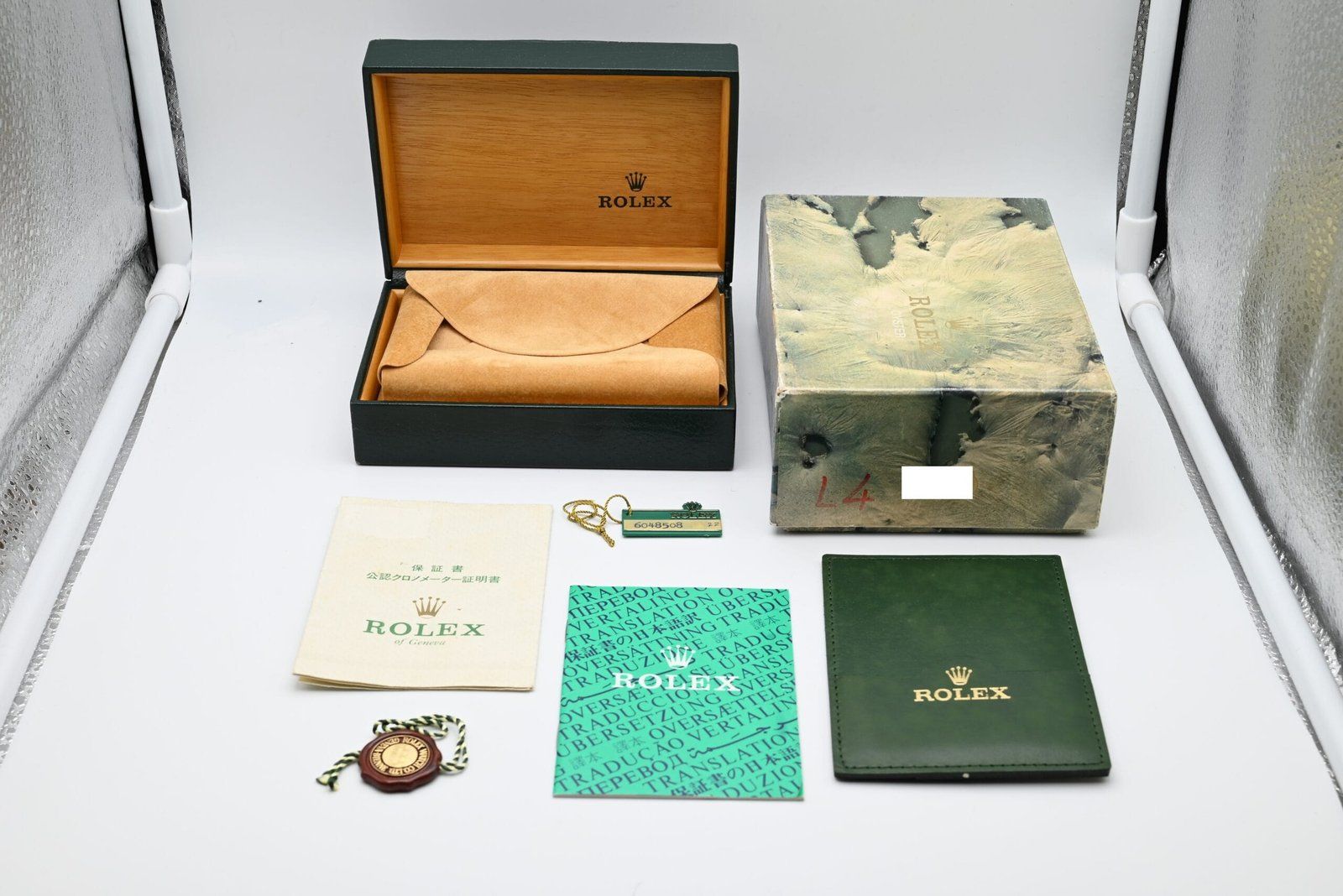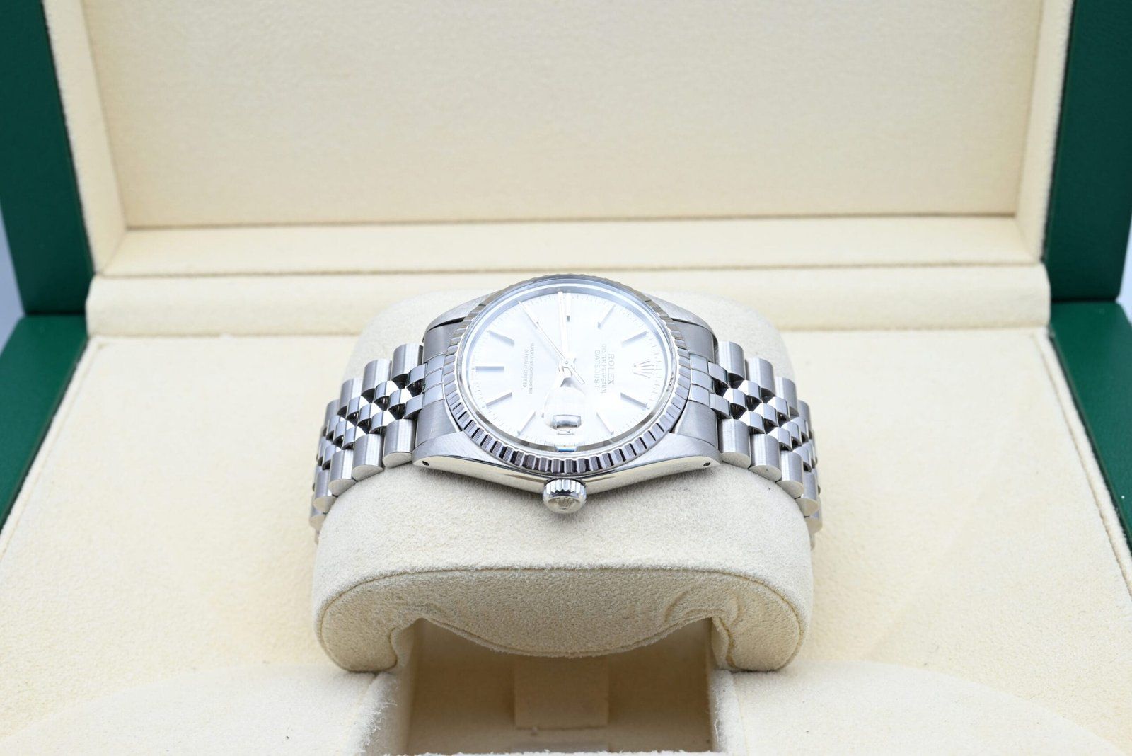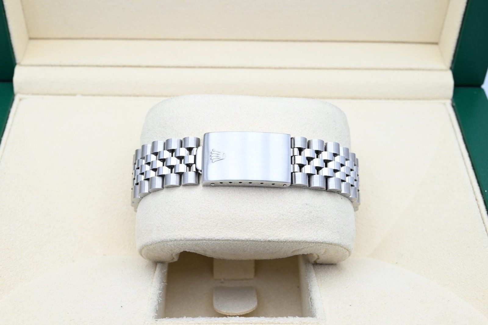 - Légères traces d’usure telles que de fines rayures ou micro-rayures. Le boîtier, la lunette et le bracelet conservent leurs arêtes nettes et leur forme générale. Peut avoir été poli professionnellement sans altérer les contours d’origine. Entièrement fonctionnelle mécaniquement.