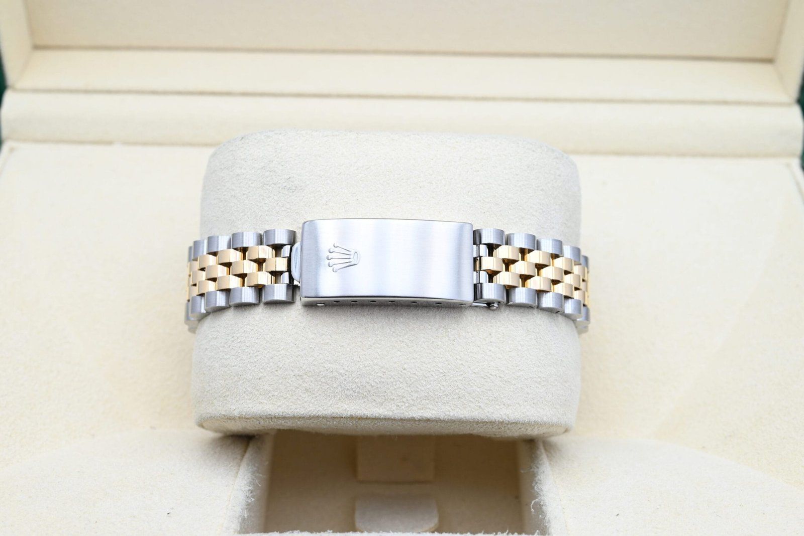 - Légères traces d’usure telles que de fines rayures ou micro-rayures. Le boîtier, la lunette et le bracelet conservent leurs arêtes nettes et leur forme générale. Peut avoir été poli professionnellement sans altérer les contours d’origine. Entièrement fonctionnelle mécaniquement.